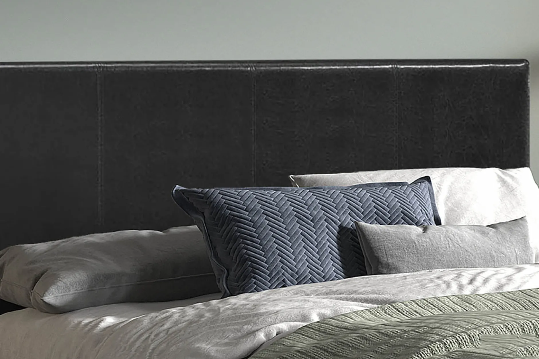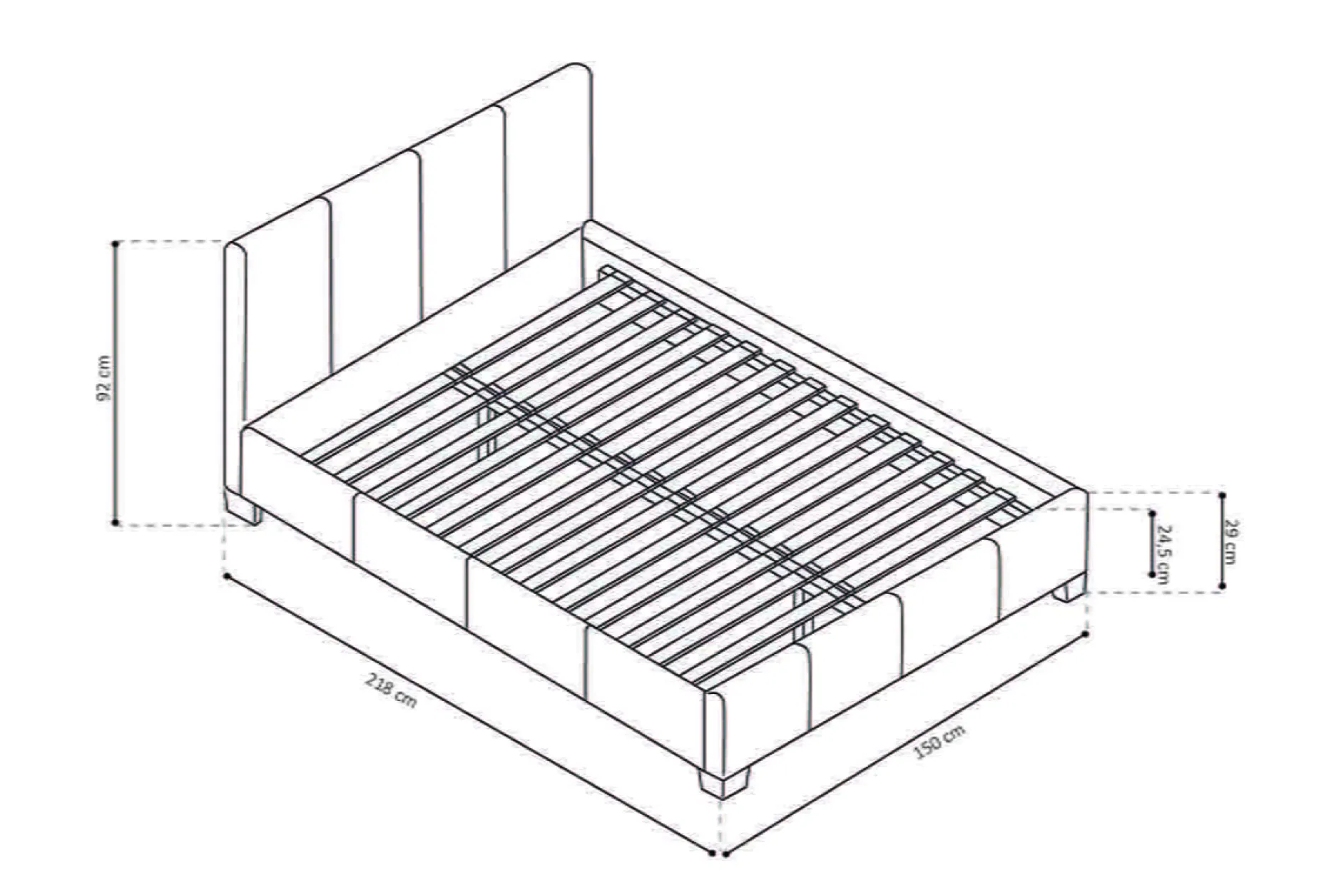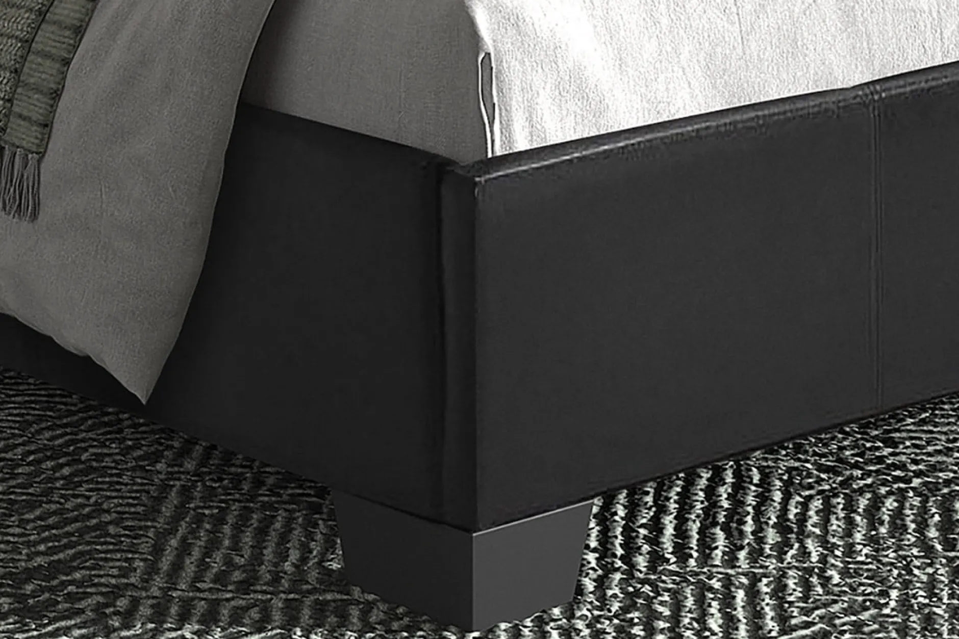 Tweepersoonsbed met kunstlederen bekleding, het frame is vervaardigd uit een combinatie van MDF en spaanplaat. Het bed wordt geleverd inclusief lattenbodem.