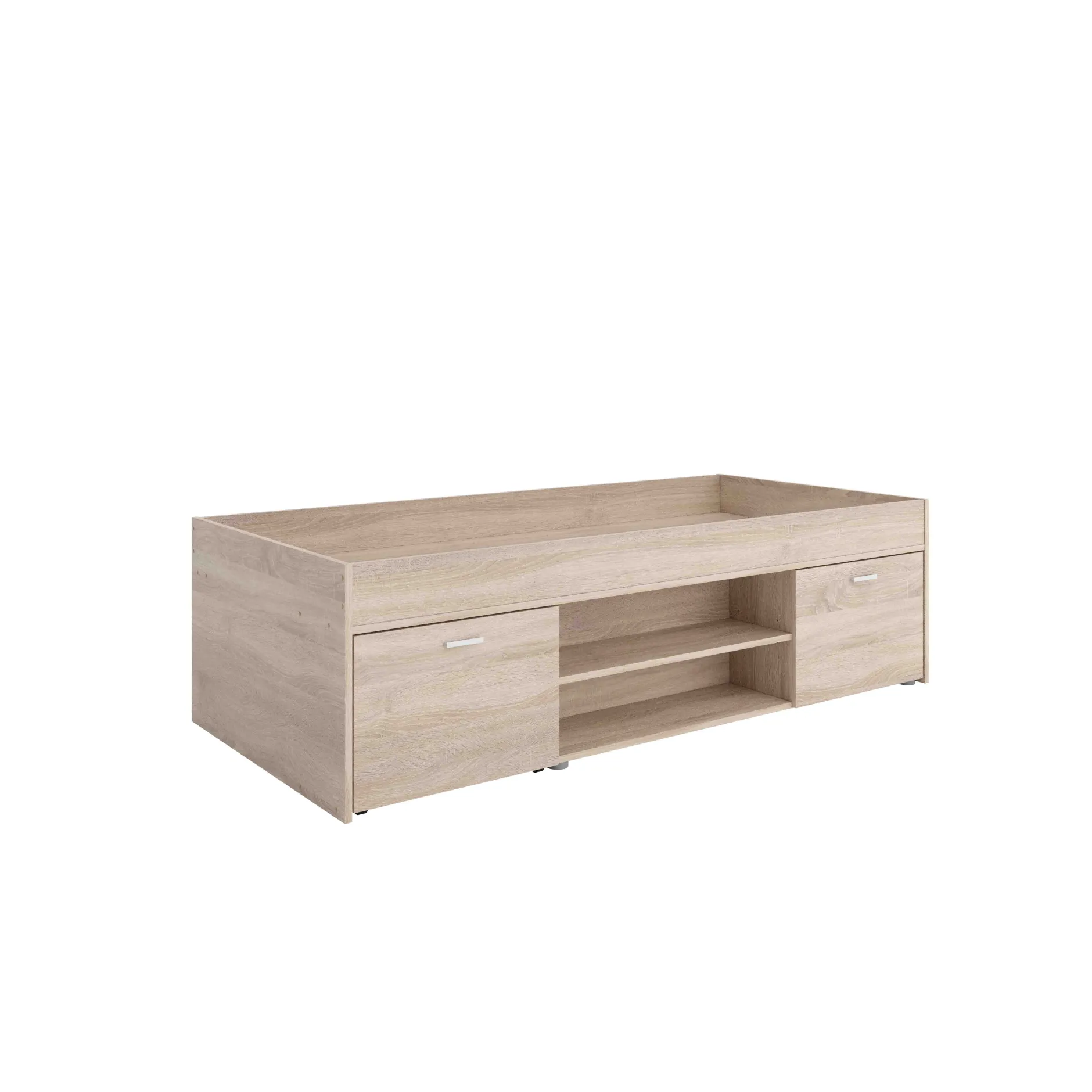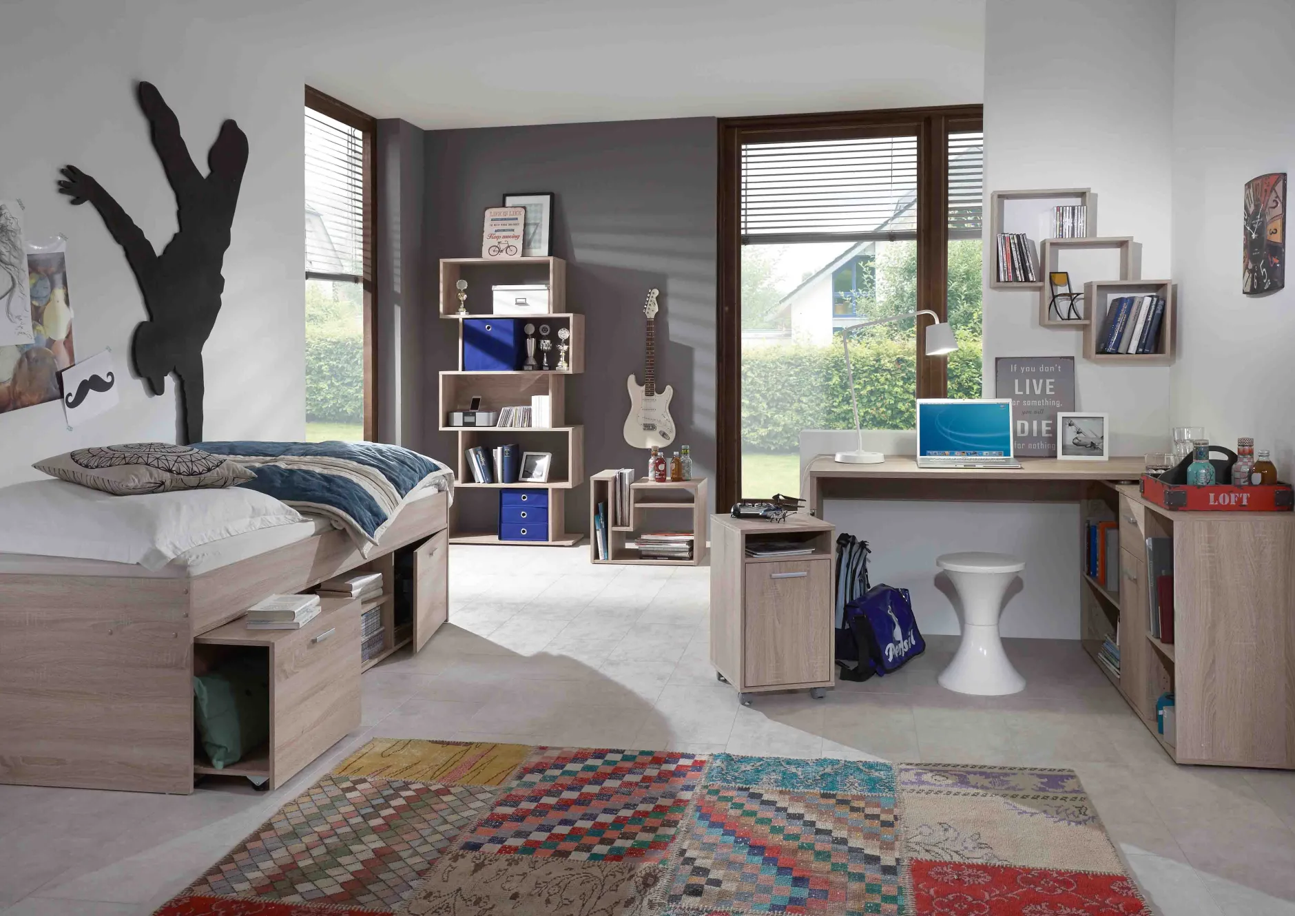 Dit praktische bed is vervaardigd uit een stevige spaanplaat en afgewerkt met een sterke melamine. In de lade aan de linkerkant kun je extra beddengoed opbergen en rechts achter de deur al het speelgoed. Gemakkelijk te monteren met bijgeleverde montagehandleiding.