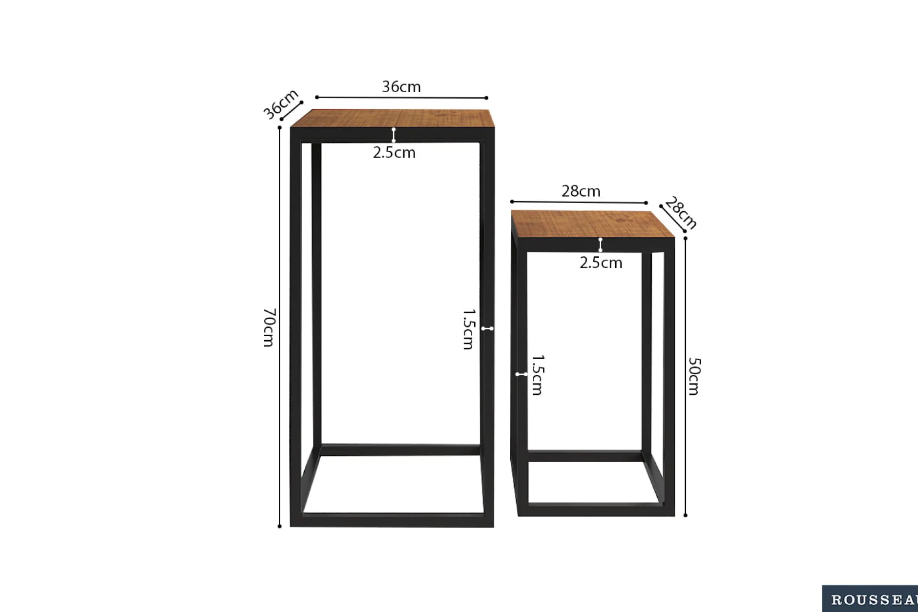 - Tafel 1: 36 x 36 x 70cm
