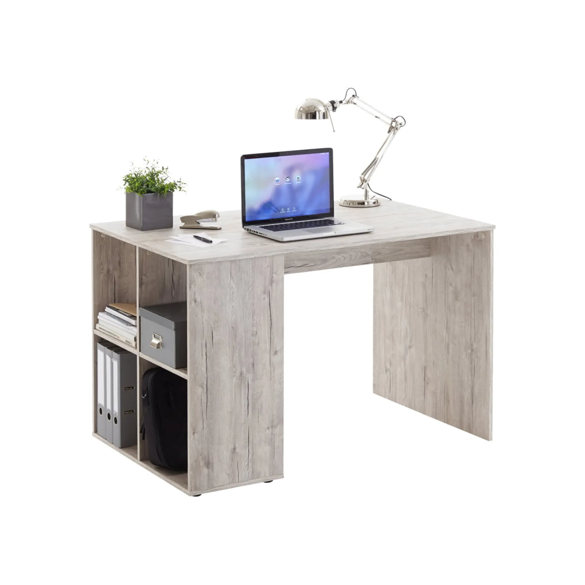 Met dit stevige bureau creëer je gemakkelijk een fijne werkplek in je kantoor, woon- of slaapkamer. Het bureaublad is vervaardigd uit een stevige spaanplaat afgewerkt met een sterke melamine waardoor deze gemakkelijk schoon te houden is. Eenvoudig te monteren door middel van de bijgeleverde montagehandleiding. In de vakken aan de zijkant van het bureau kun je al je werk gerelateerde spullen kwijt. Bekijk ook de andere meubelen uit deze collectie en richt je kantoor in één keer in!