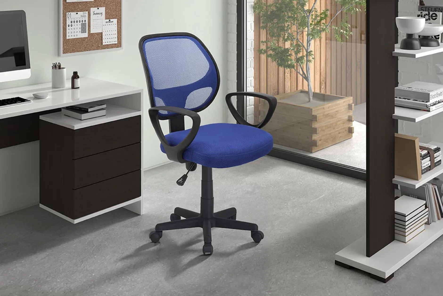 Leuke (kinder-) bureaustoel in meerdere kleuren. De zithoogte van de bureaustoel is in hoogte verstelbaar van 41 cm tot 53 cm en het zitvlak heeft een polyester bekleding.