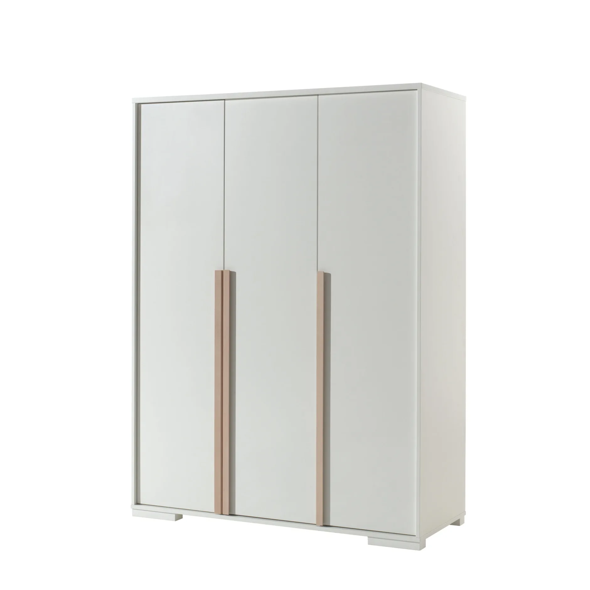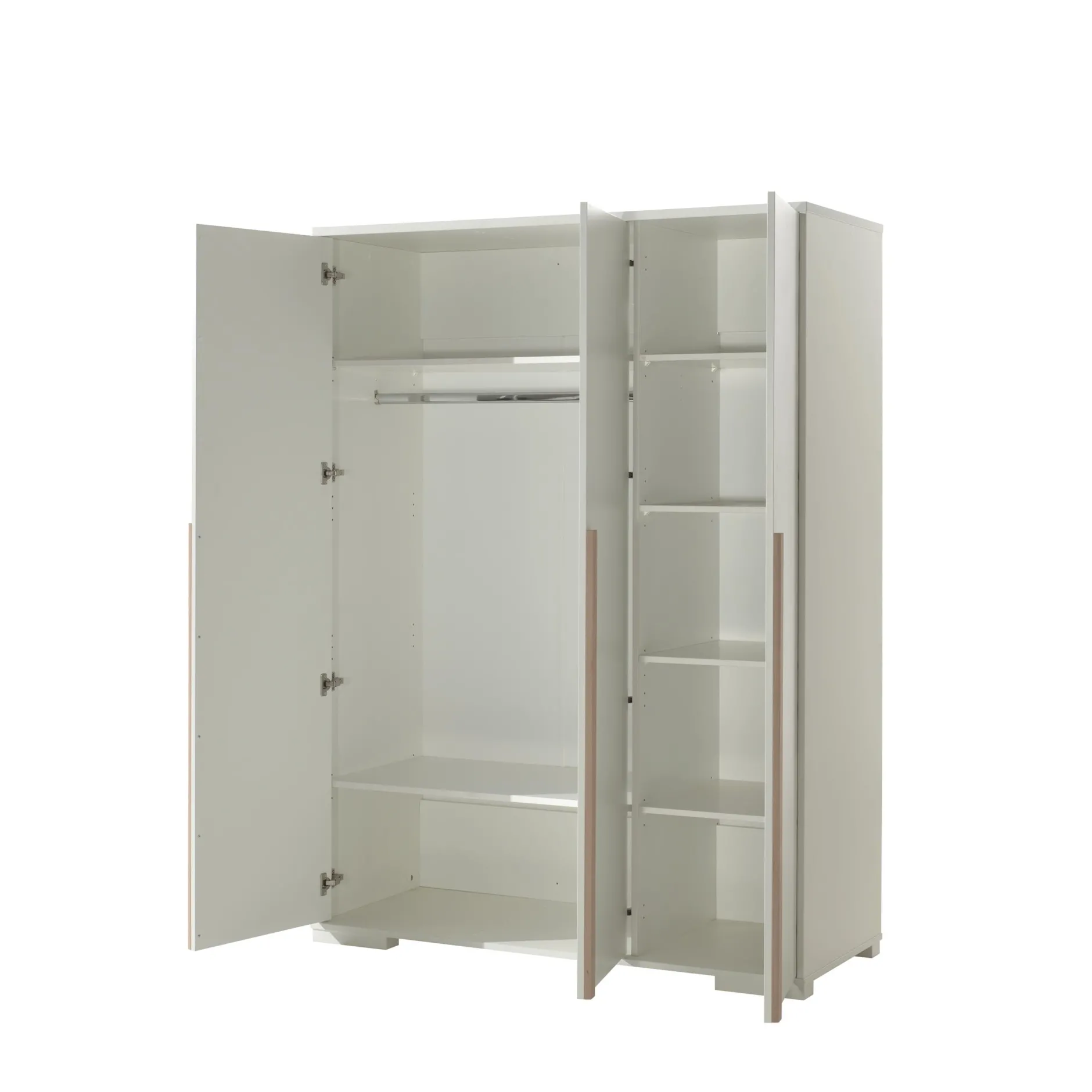 Deze handige driedeurskast biedt voldoende ruimte voor al je kleren. Achter de twee linker openslaande deuren bevinden zich twee legplanken in combinatie en een kledingroede. Achter de rechterdeur bevinden zich vier verstelbare legplanken. De kast is vervaardigd uit een stevige vezelplaat en afgewerkt in een sterke melamine. Leuk te combineren met de andere meubelen uit deze serie.