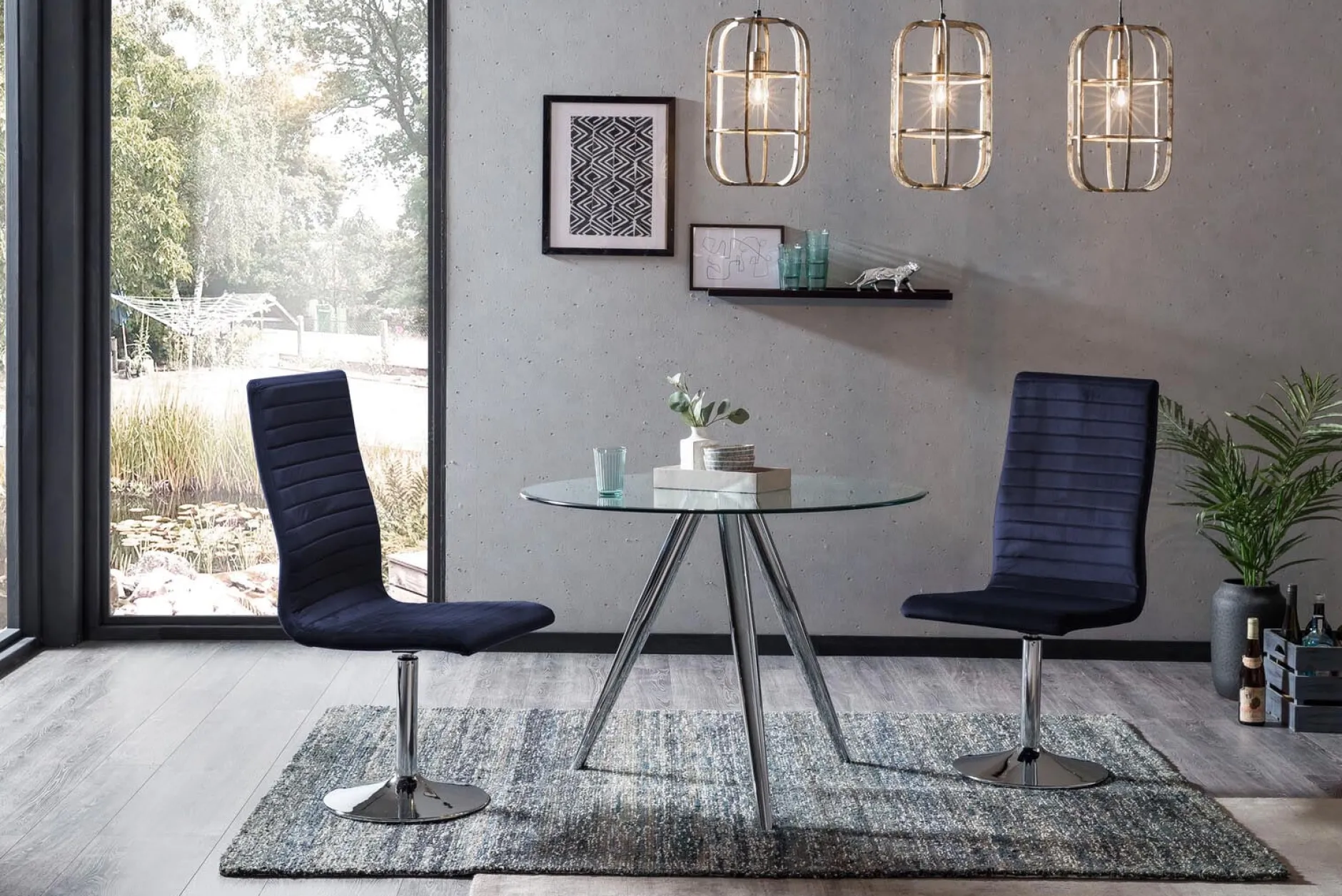Een stijlvolle glazen eettafel met een modern ontwerp.