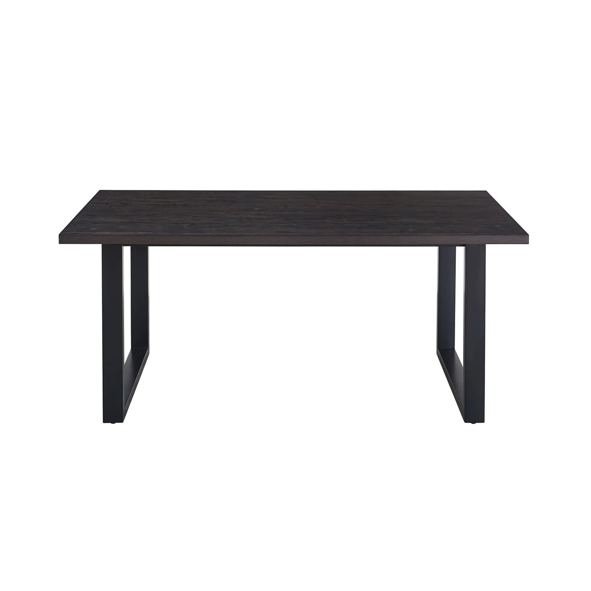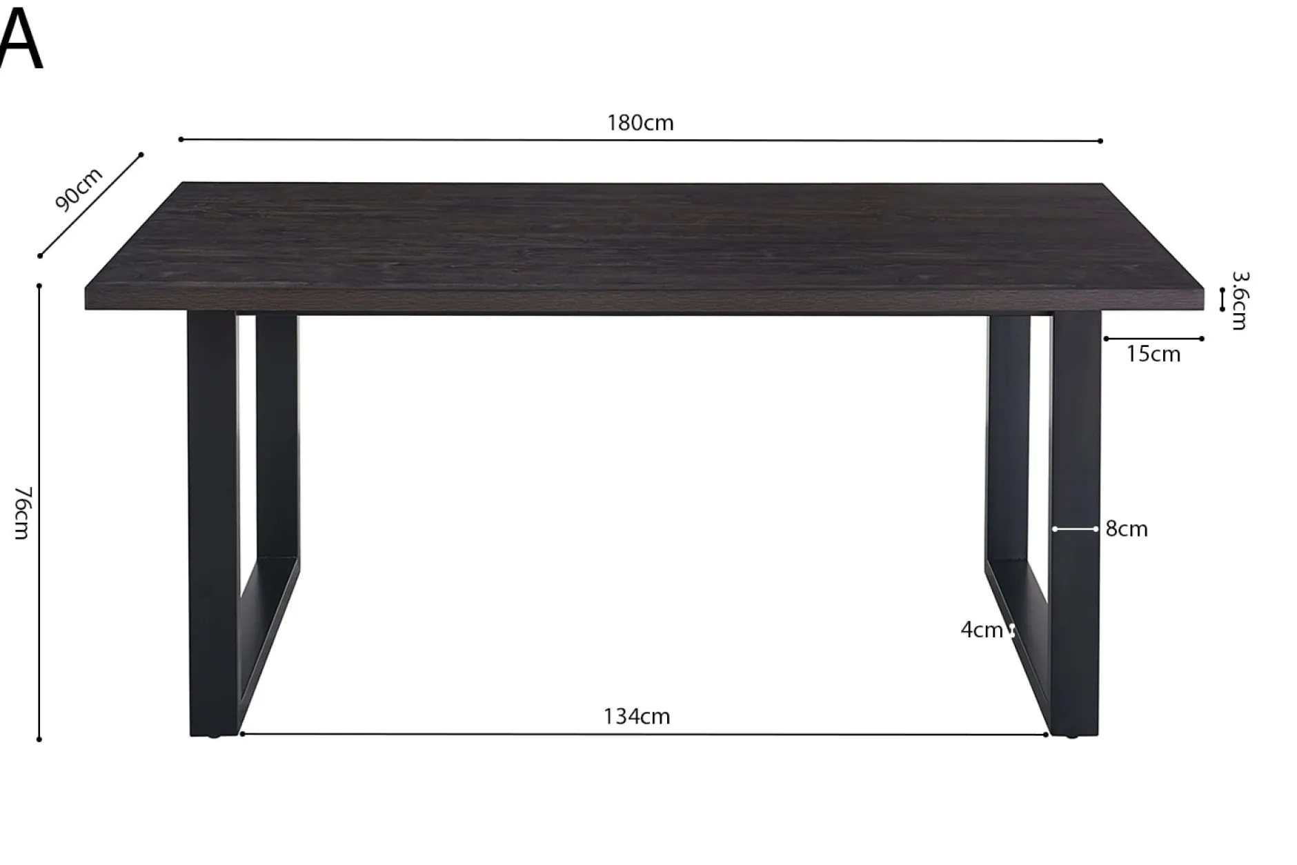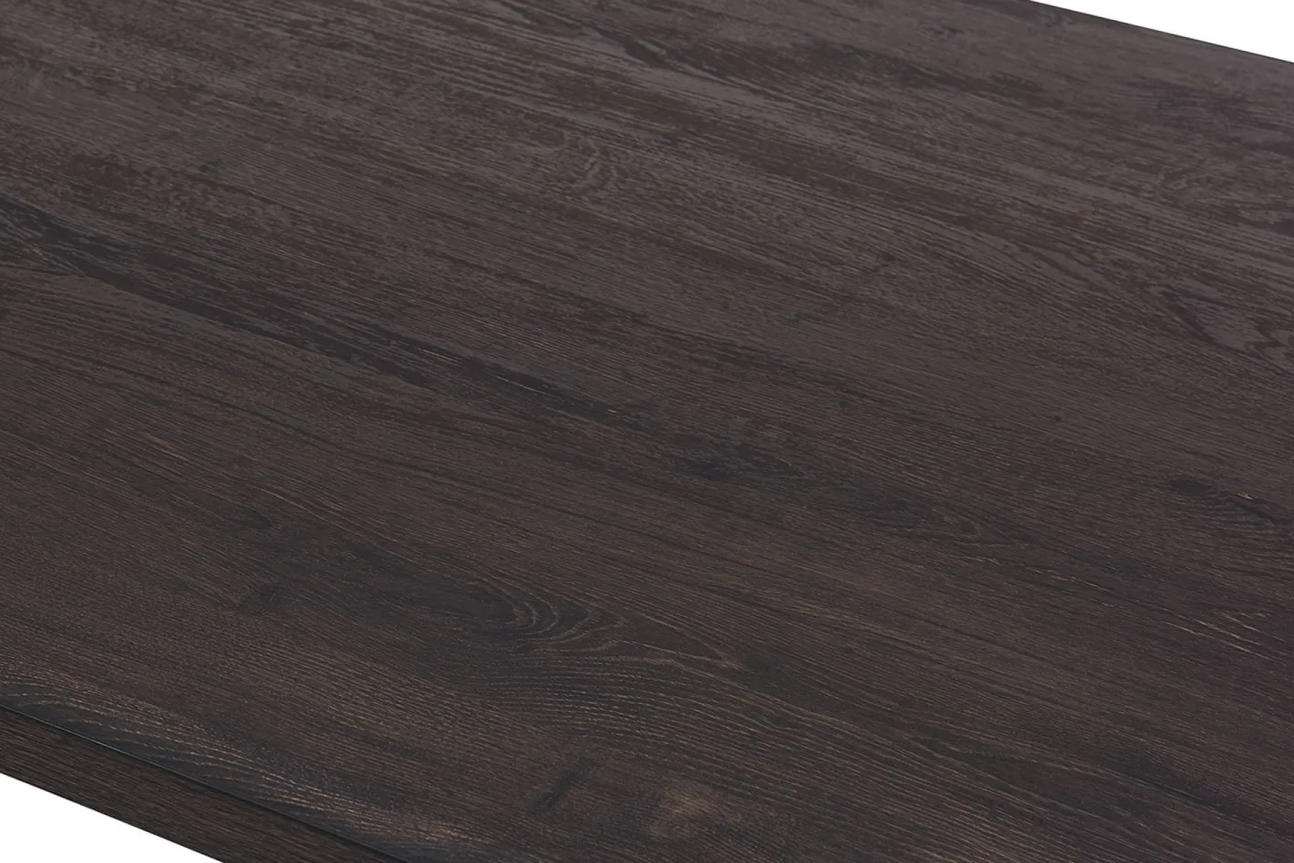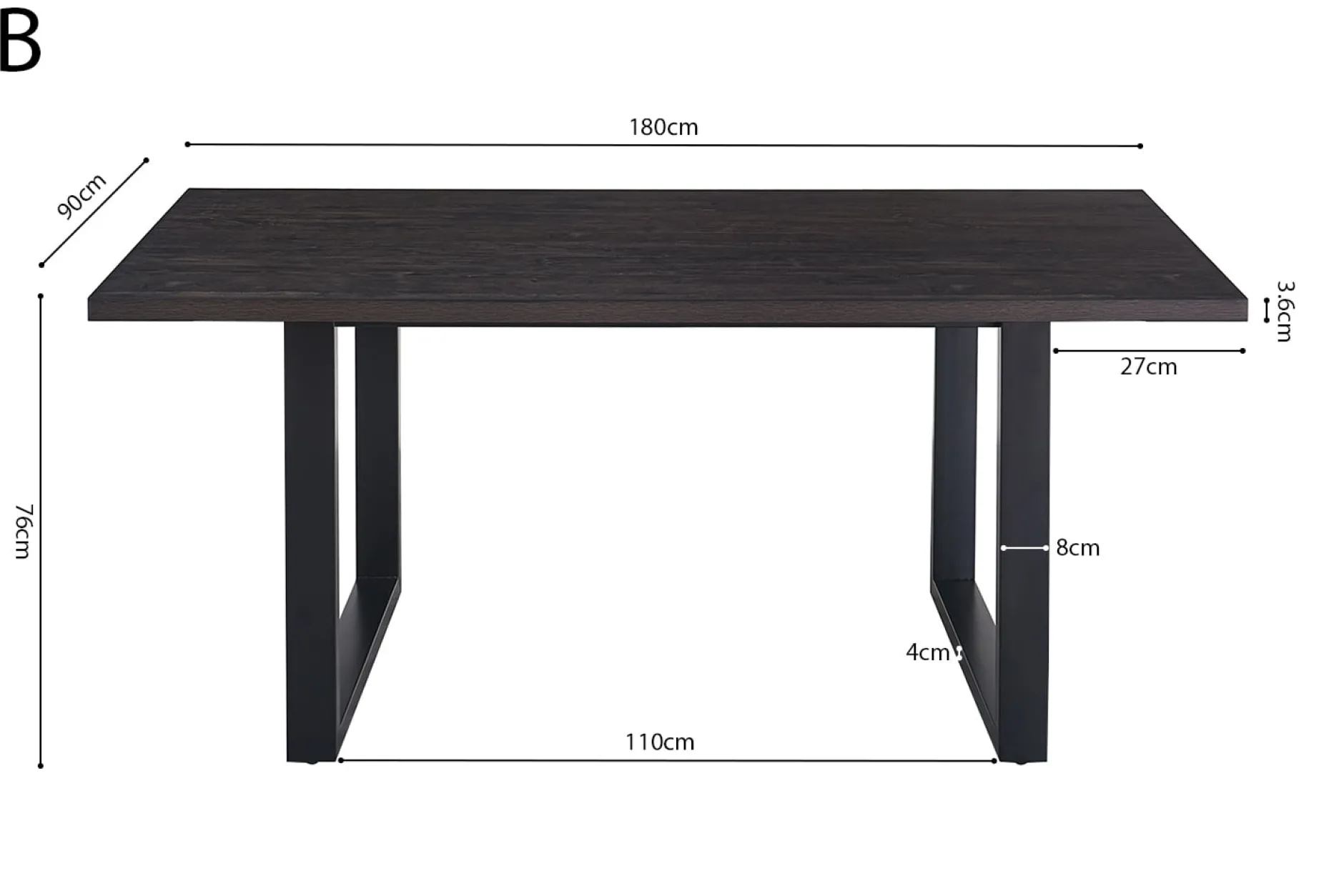 De Eetkamertafel Eugene, met een donkerbruin decor afgewerkt MDF-blad dat voorzien is van stevige ABS-randen, rust op robuuste metalen poten van 8×4 cm. Deze tafel combineert een eigentijds design met duurzame materialen. Het decor geeft het tafelblad een warme uitstraling en beschermt tegen dagelijkse slijtage. Met voldoende ruimte voor gezellige maaltijden en bijeenkomsten, is deze tafel perfect voor in je eetkamer. Geniet van langdurige kwaliteit en stijl met de Eugene eetkamertafel.