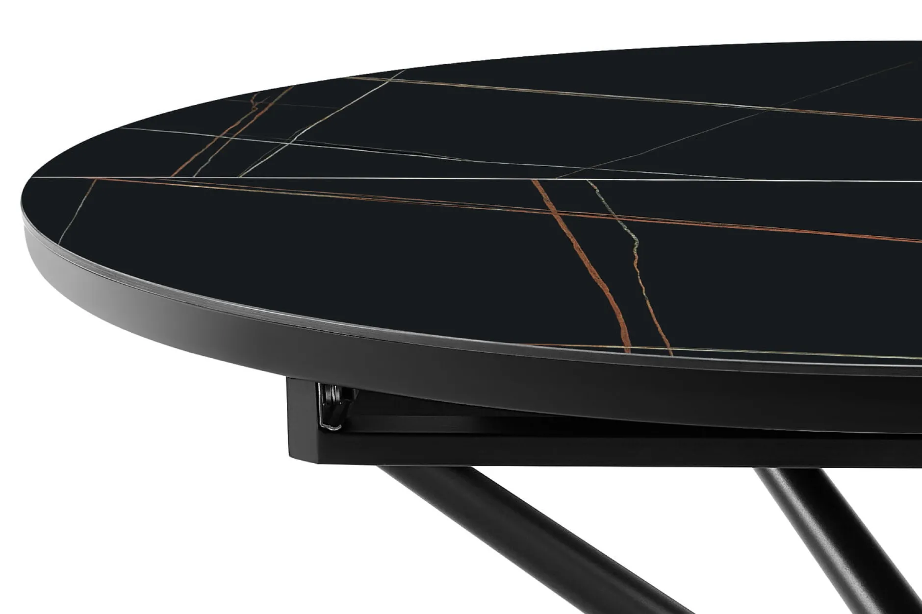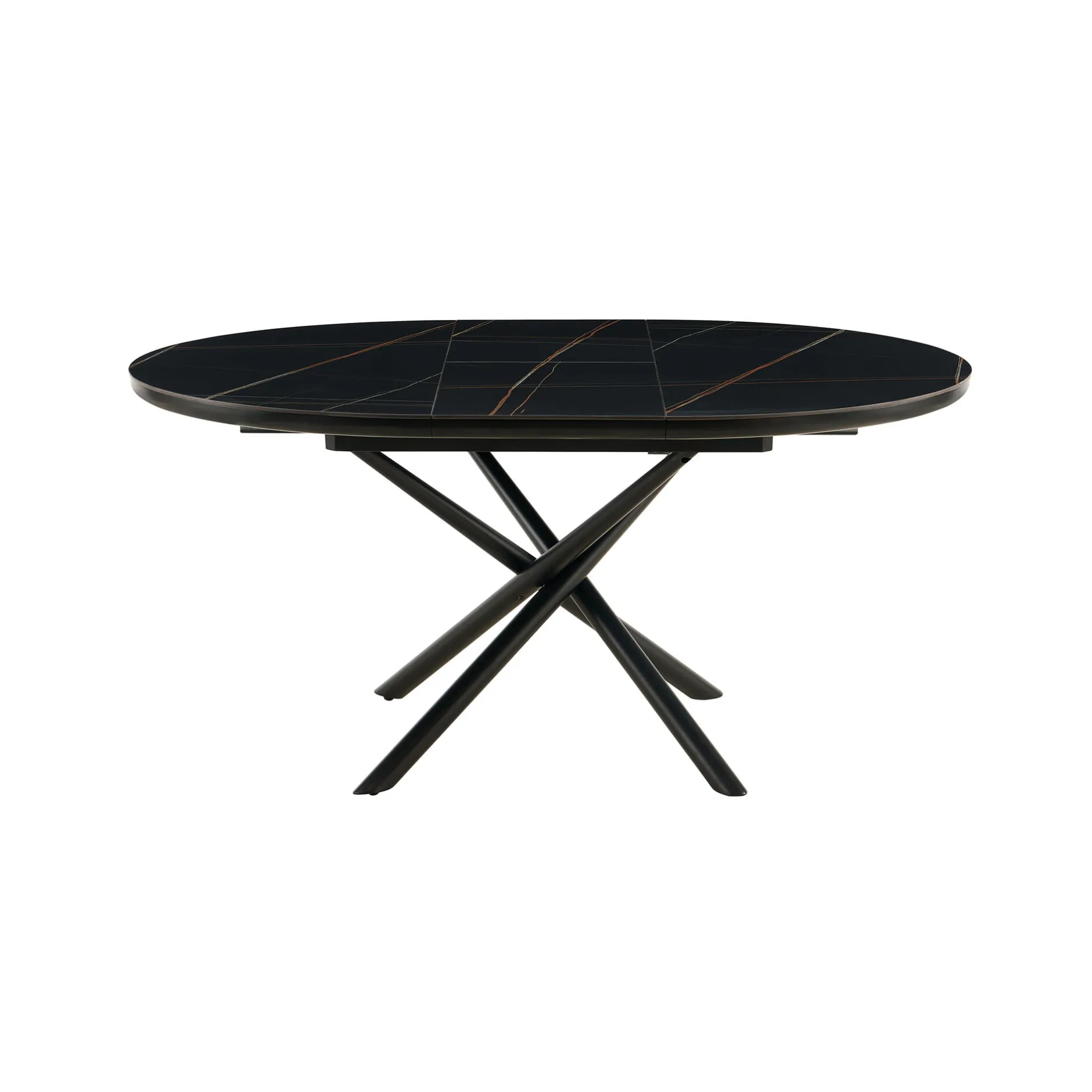Een moderne eetkamertafel met een uittrekbare functie en een elegante marmerlook.