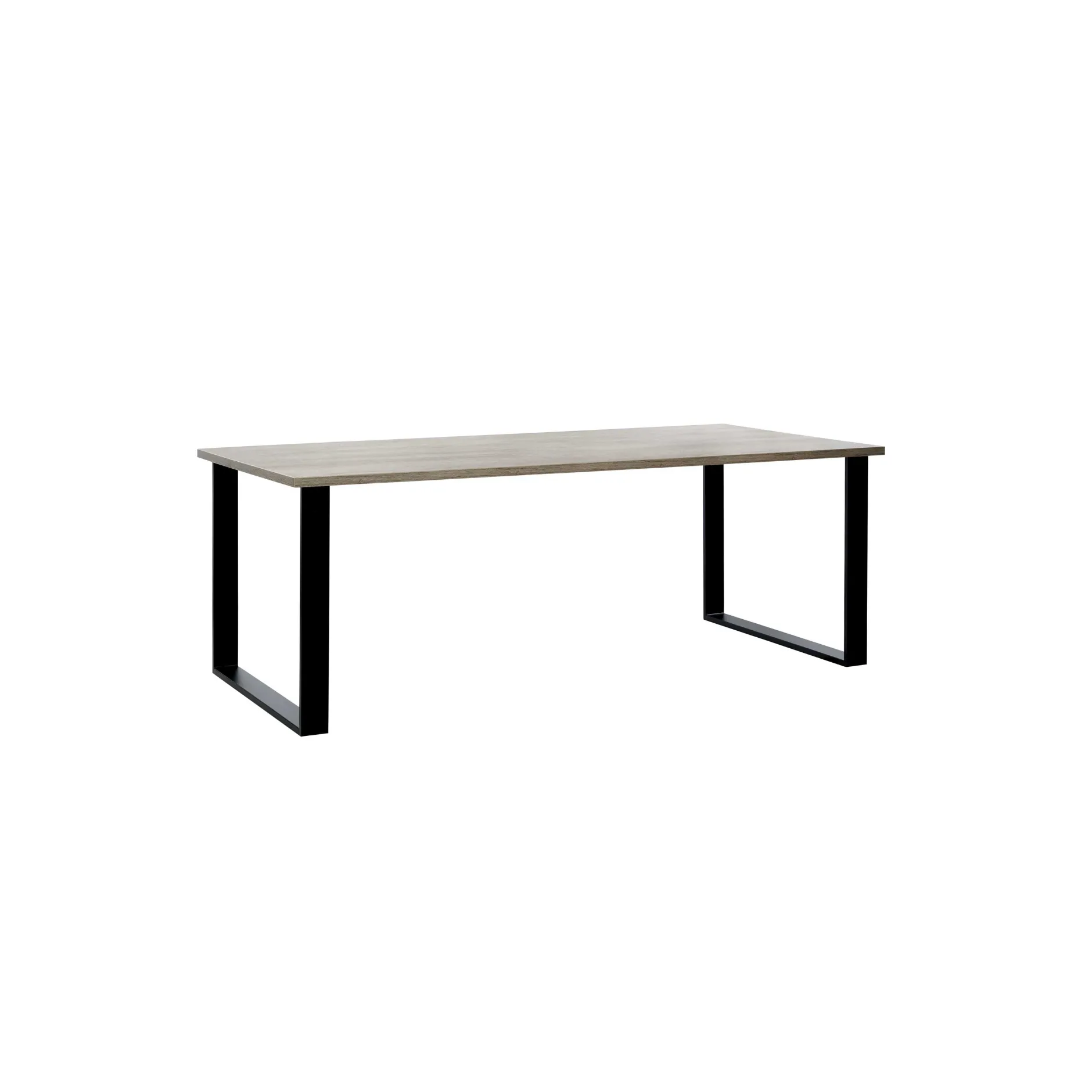 Deze moderne eettafel vindt gemakkelijk zijn plaats in elk interieur. De eetkamertafel kenmerkt zich door het gebruik van zwart metalen poten gecombineerd met een eiken afgewerkt bovenblad. Gemakkelijk te monteren door middel van bijgeleverde montagehandleiding. Dit meubel is vervaardigd uit een stevige spaanplaat en afgewerkt met een sterke melamine. Bekijk ook de andere meubelen uit deze serie en richt je woonkamer in één keer helemaal in!