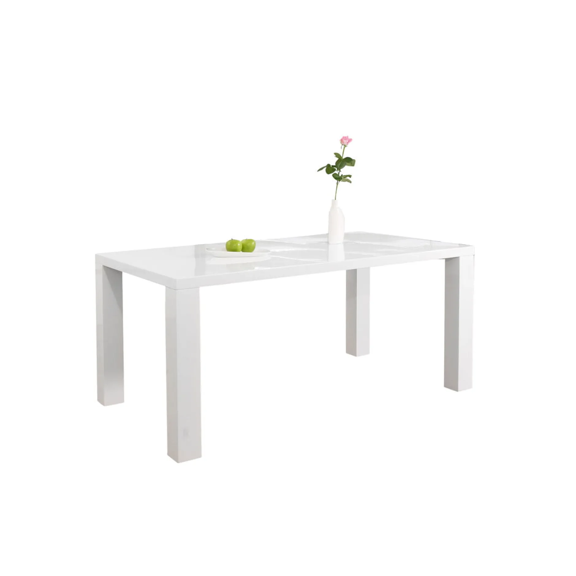 Deze stijlvolle eettafel vindt gemakkelijk zijn plaats in elk interieur. Het tafelblad is vervaardigd uit een stevige MDF en afgewerkt in hoogglans wit. De poten van 10×10 centimeter zorgen ervoor dat deze tafel stevig staat. Het tafelblad is 4,5 centimeter dik. Gemakkelijk te monteren doormiddel van bijgeleverde montagehandleiding.