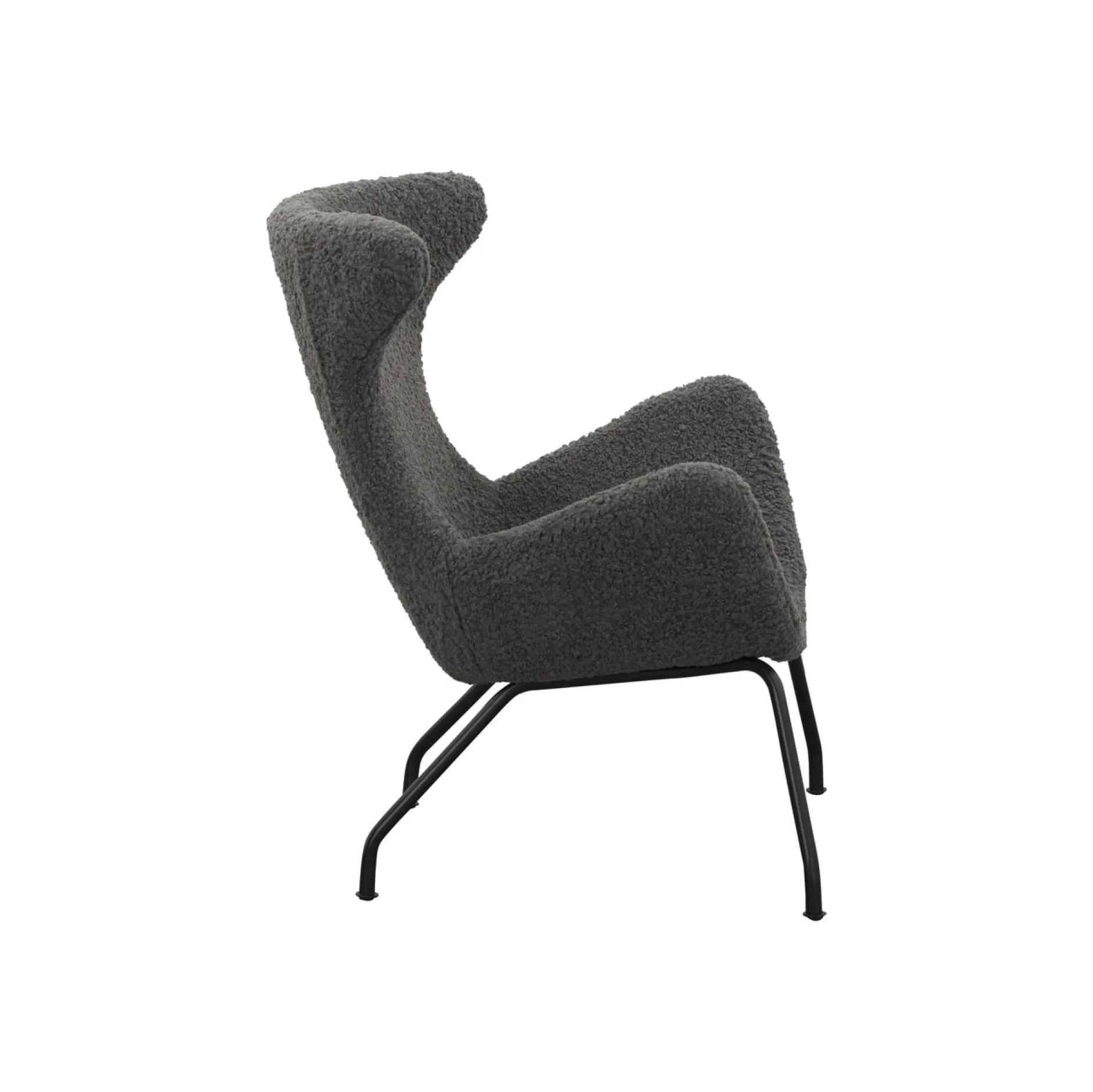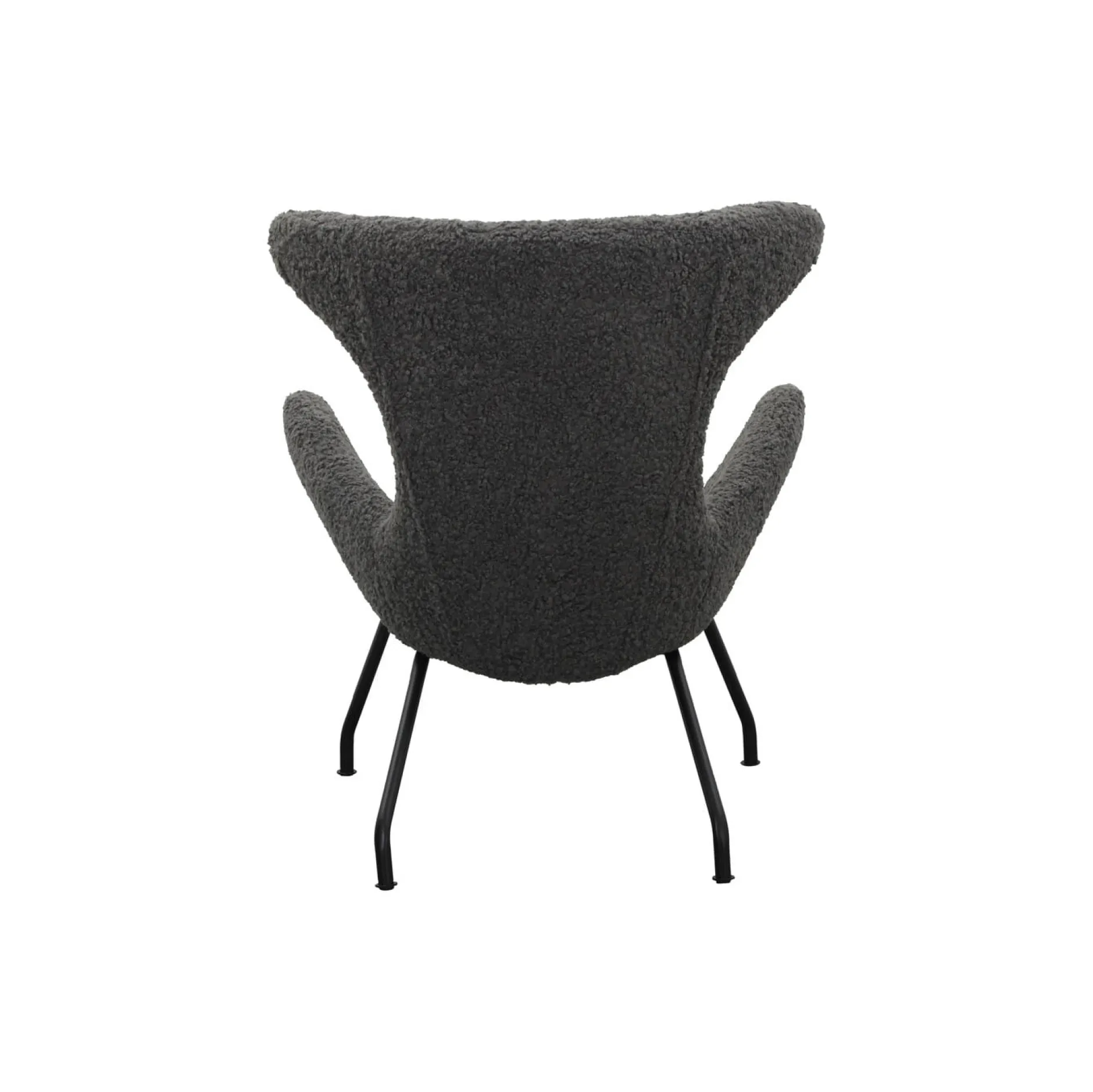 In deze fauteuil rust je helemaal uit! Door zijn ontwerp ben je van een goed zitcomfort verzekerd. Het stevige frame is gemaakt van zwart gepoedercoat metaal. De stoel is gestoffeerd met een teddy bont stof. De fauteuil heeft een zithoogte van 37 centimeter, een zitbreedte van 39 centimeter en de zitdiepte is 47 centimeter.