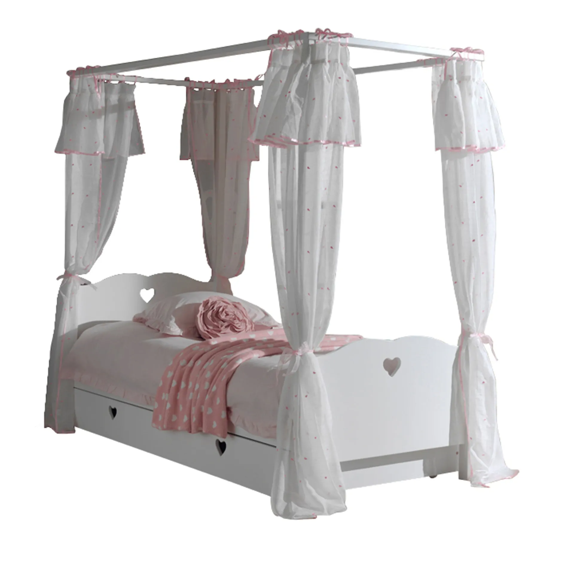 Deze set van 4 sluiergordijnen maken het hemelbed nog romantischer.