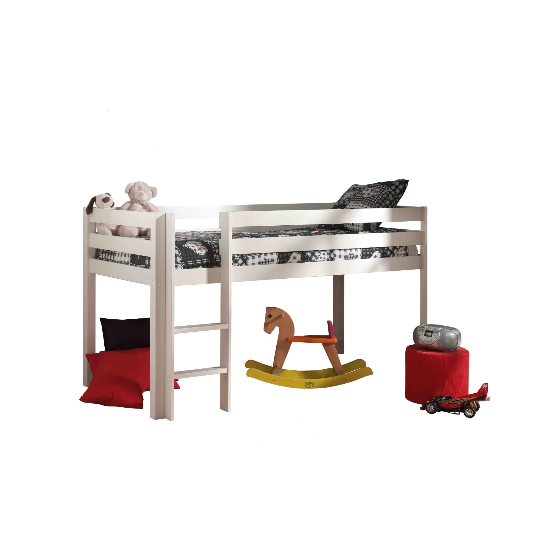 Deze stabiele hoogslaper is gemaakt van Scandinavisch grenen is afgewerkt met een sterke lak. Een veilige nachtrust is gegarandeerd door de valbeveiliging rondom het slaapgedeelte. De kan zowel links als rechts gemonteerd worden. De lattenbodem wordt meegeleverd, in dit bed past een matras van 90×200 cm. Bekijk ook de rest van deze collectie voor bijpassende items!