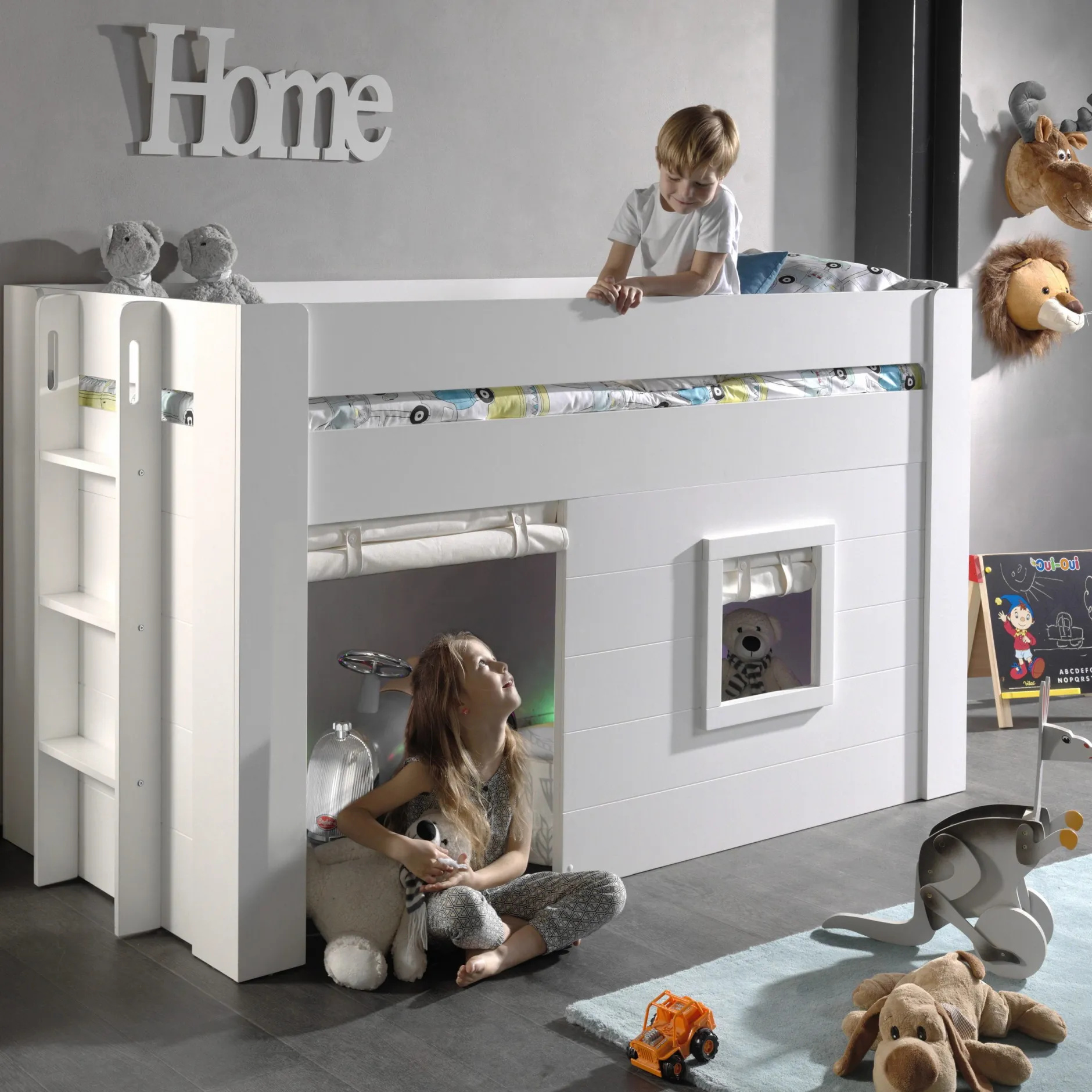 De hoogslaper maakt je kinderkamer door de deuropening, de ladder en het raam tot een echt speel/slaappaleisje.