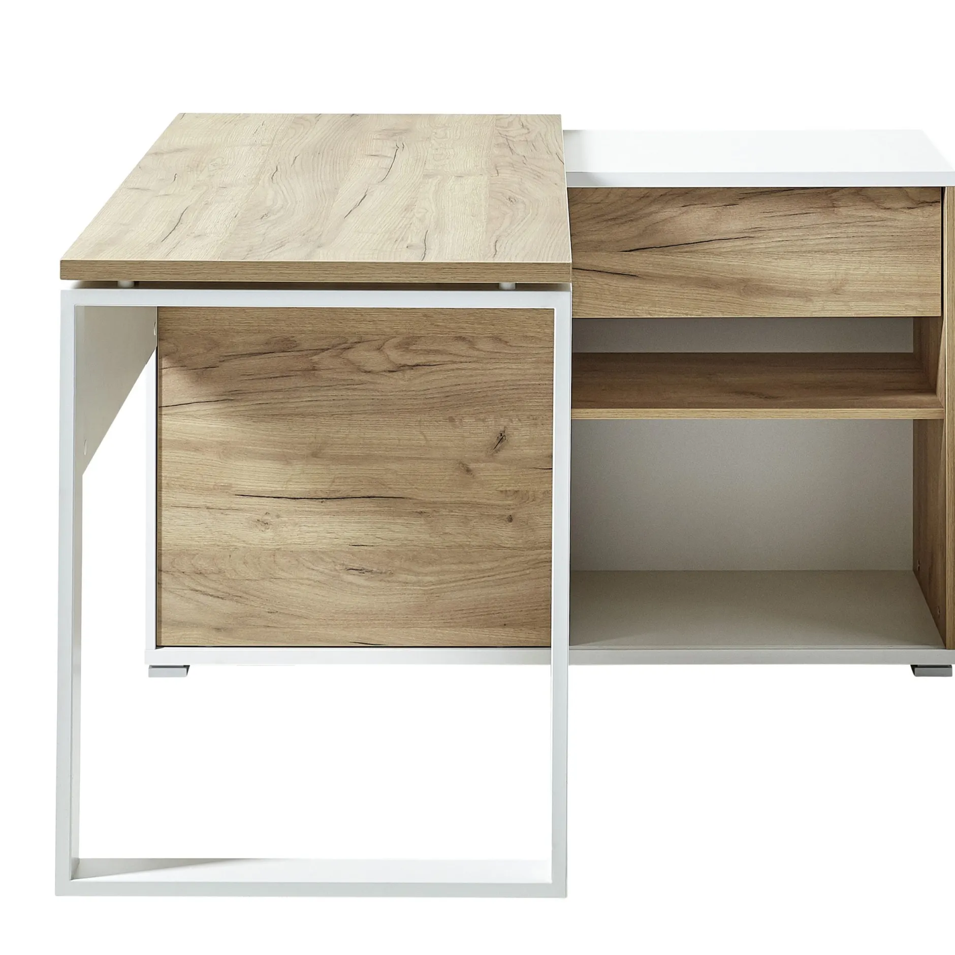 Dit bureau is een handige en compacte combinatie van een bureau met kastruimte. Deze kast heeft een schuifdeur zodat altijd de helft van de kast afgesloten kan worden. Aan 1 zijde heeft de kast een handige lade voor het opbergen van kleine spulletjes als pennen , nietjes etc. In het blad is een kabeldoorvoer.