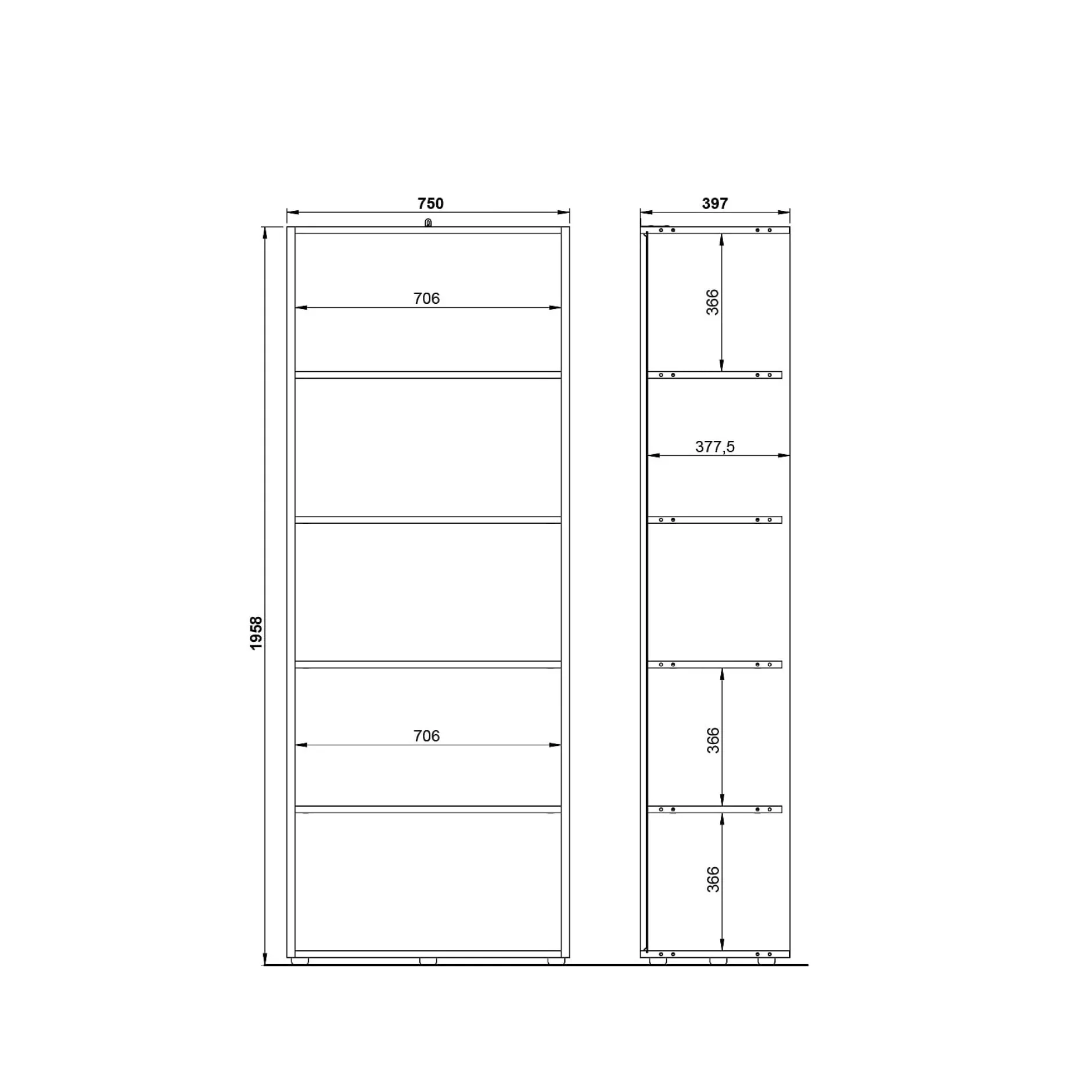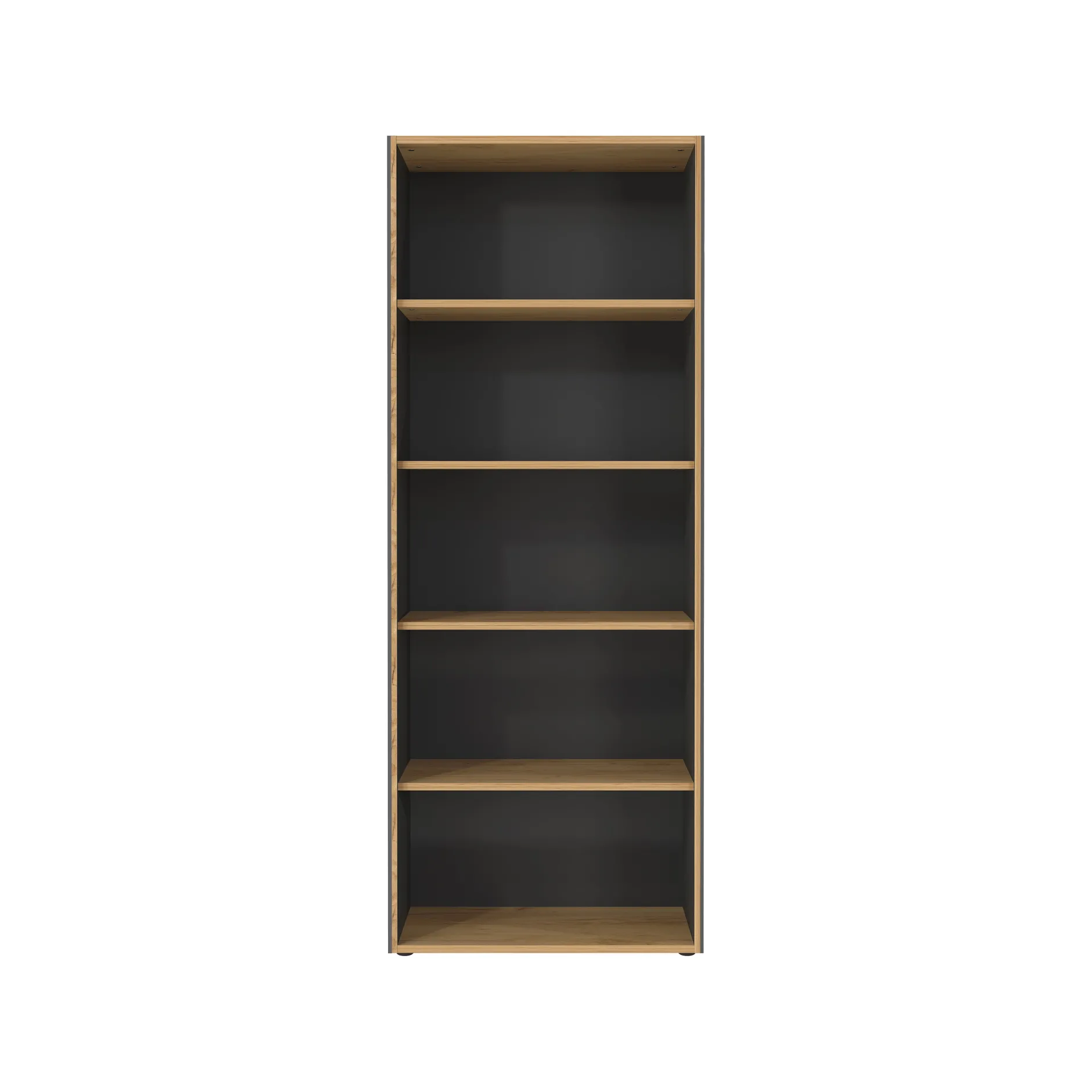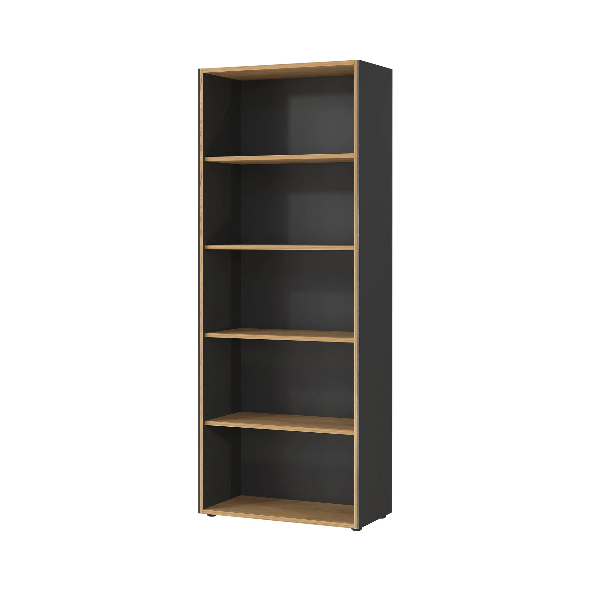 De Hoge Open Kantoorkast Pytheas Grafiet Eiken is een archiefkast met vier vaste planken, elk belastbaar tot 22 kg.