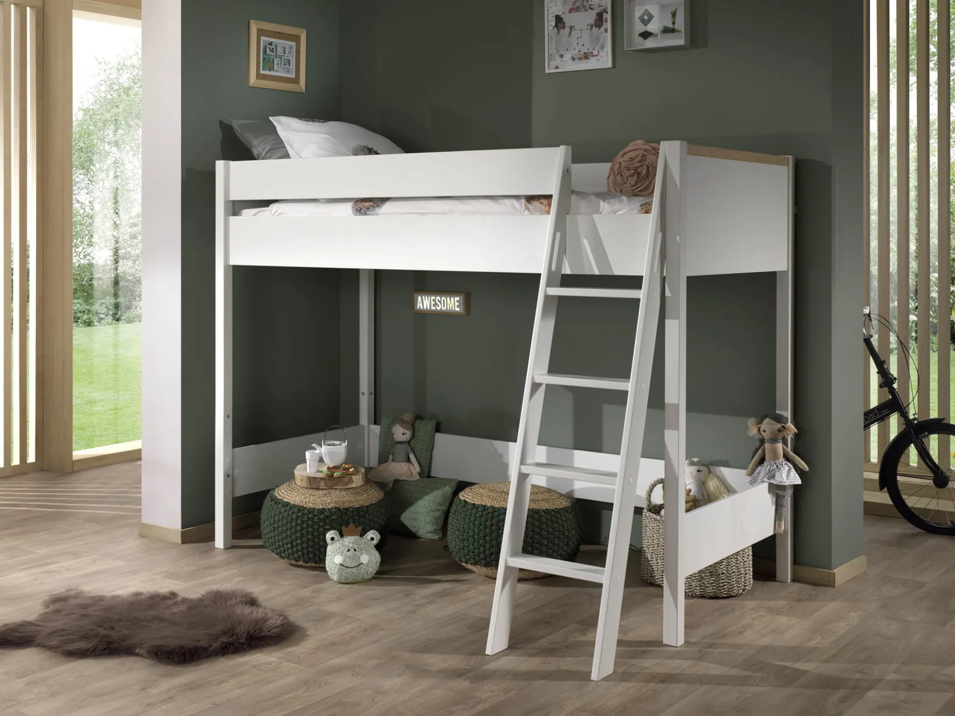 Onder deze handige hoogslaper is voldoende ruimte om een speel- of studeerhoek te creëren. Een veilige nachtrust is gegarandeerd door de valbeveiliging rondom het slaapgedeelte. De ladder kan zowel links als rechts gemonteerd worden. De lattenbodem wordt meegeleverd, in dit bed past een matras van 90×200 cm met een maximale dikte van 20 centimeter. Maximaal toelaatbare gewicht per slaapplaats is 75KG. Gemakkelijk te monteren door middel van bijgeleverde montagehandleiding. Bekijk ook de rest van deze collectie voor bijpassende items!