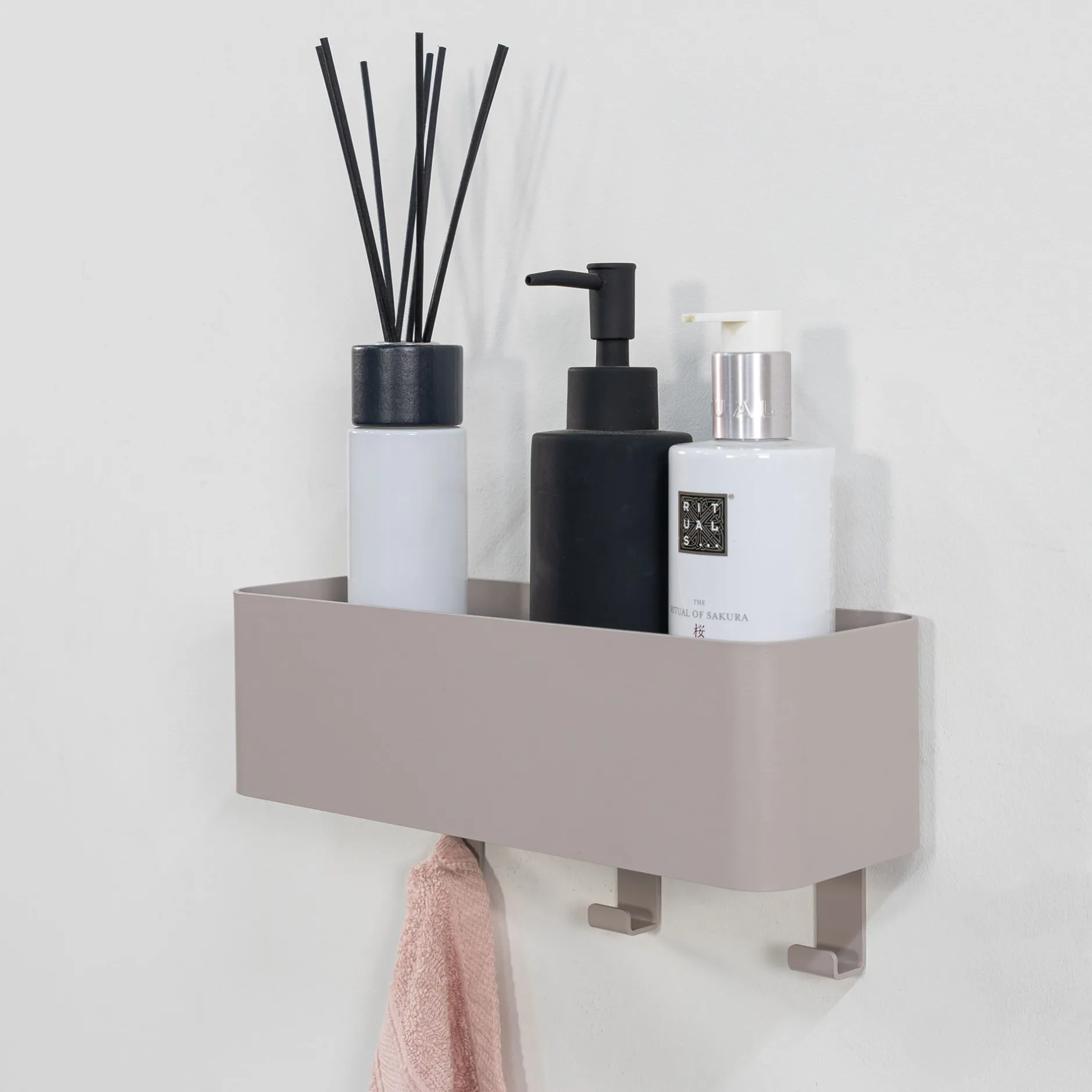 Optimaliseer je ruimte met de Kapstok Alfie Taupe 3-haaks – een buitengewoon veelzijdige wandplank en kapstok in één!