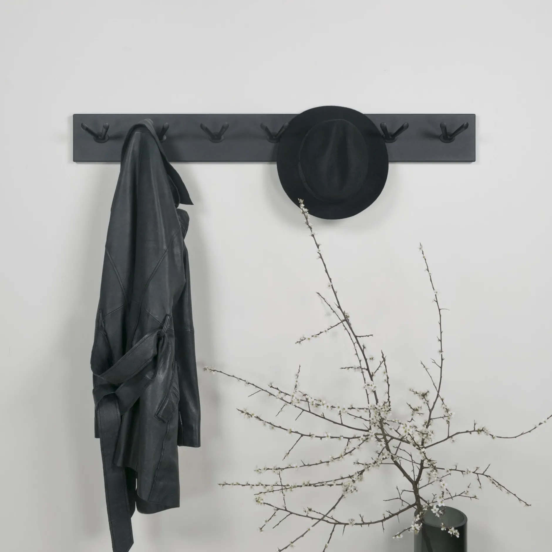 Stijlvolle kapstok voorzien van een fijn structuur poedercoating. Voldoende dubbele haken om al je kledingstukken op kwijt te kunnen!