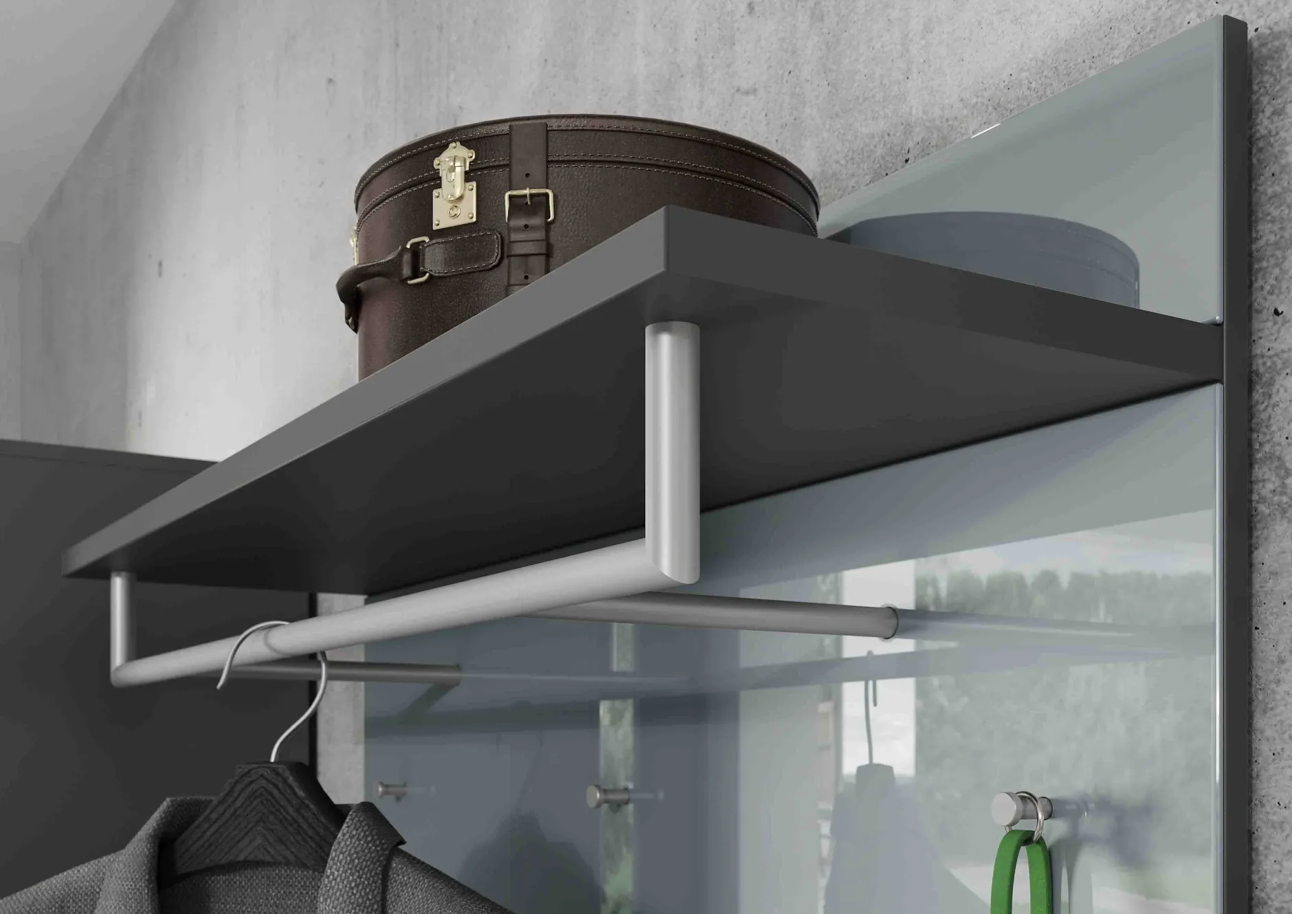 Stijlvol kapstokpaneel met een moderne uitstraling. De kledingroede en haken zijn uitgevoerd gepoedercoat metaal. Boven de kledingroede een plank voor het wegleggen van hoofddeksels. Gemakkelijk te monteren door middel van de bijgeleverde montagehandleiding. Bekijk ook de andere producten uit deze serie!