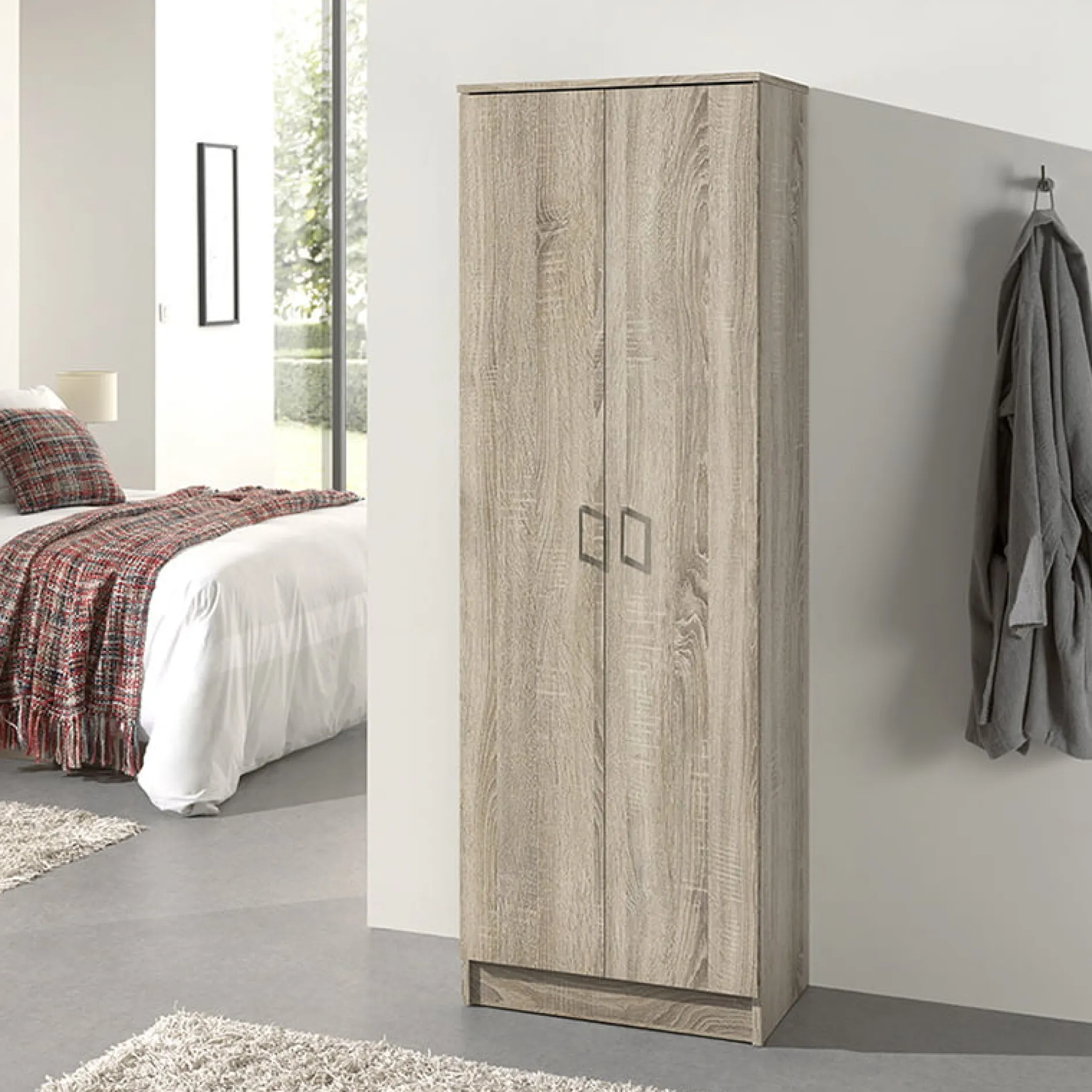 Deze handige en compacte kast biedt volop ruimte voor al je spullen, zowel toepasbaar in de slaapkamer als bijvoorbeeld je kantoor. Achter de openslaande deuren bevinden zich 4 legplanken. De kast is vervaardigd uit stevig plaatmateriaal, gemakkelijk te monteren en is door zijn eenvoud toepasbaar in elk interieur. De kast is verkrijgbaar in meerdere kleuren en afmetingen.