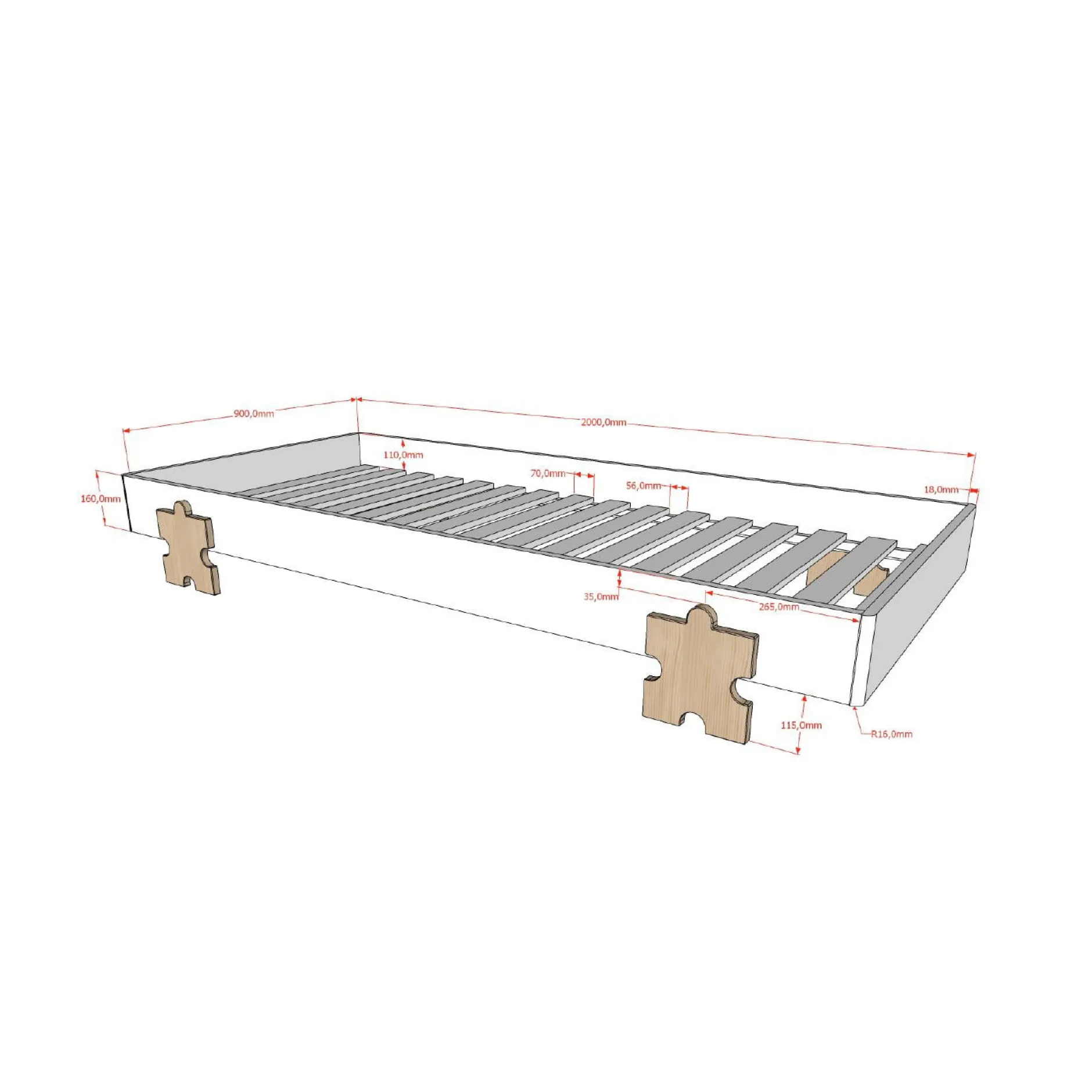 Met dit zeer handige stapelbare bed heb je altijd voldoende slaapplaatsen. Het bed is vervaardigd uit een combinatie van massief grenen en MDF en is grijs gelakt. Het bed is gemakkelijk stapelbaar waarbij de matrassen kunnen blijven liggen. De bedden zijn inclusief lattenbodem. De massieve poten zijn in de vorm van een puzzelstuk.