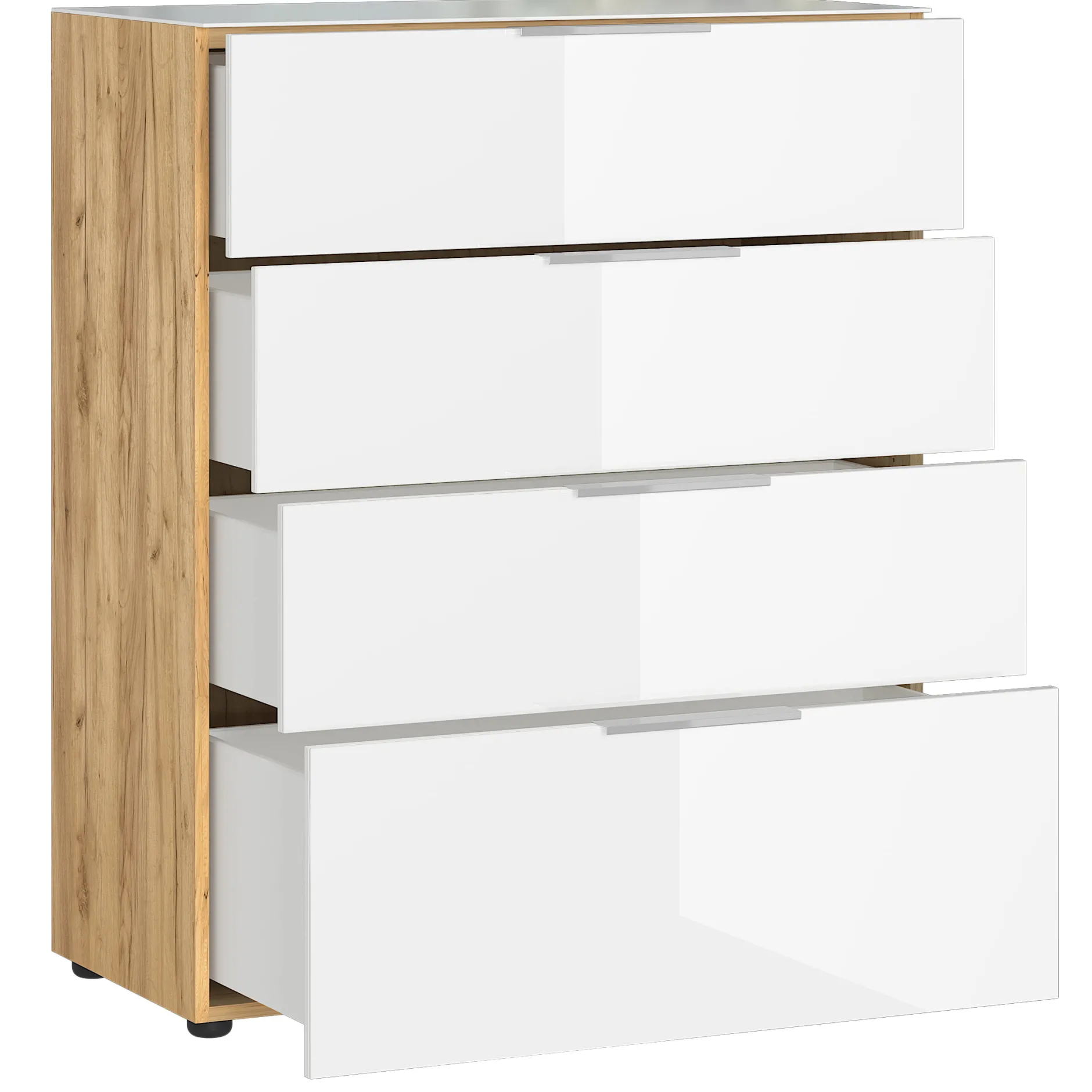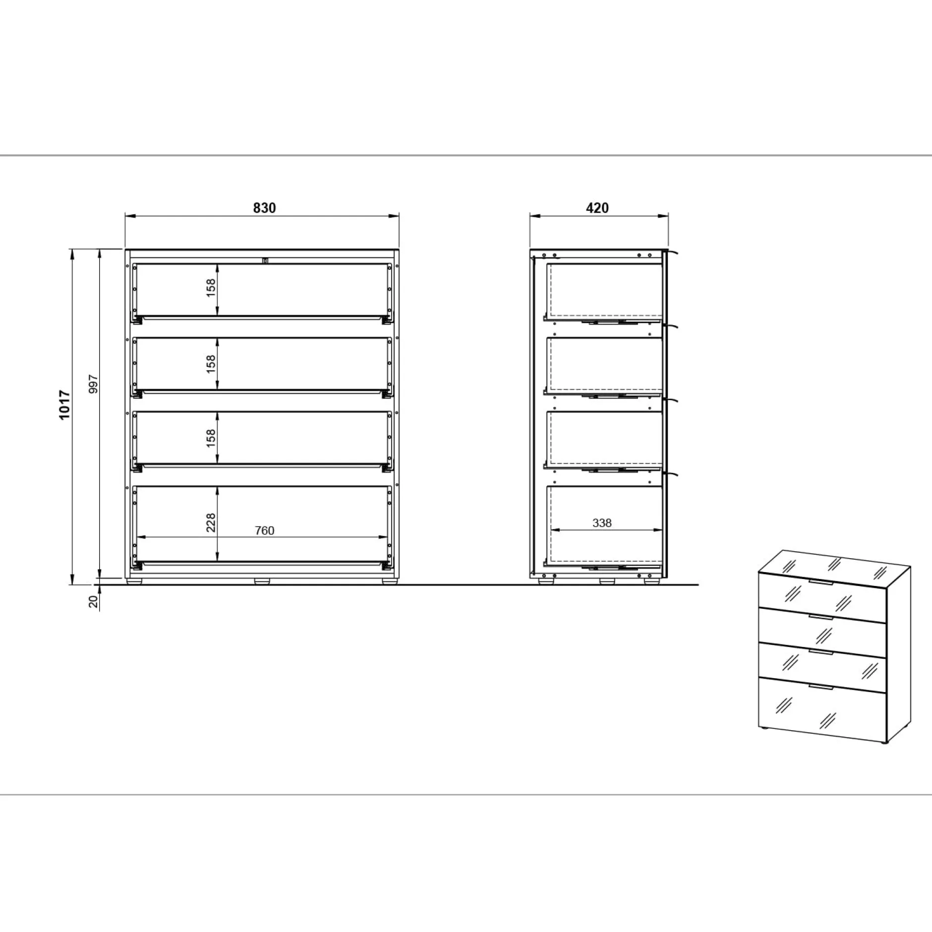 Deze commode zorgt voor extra bergruimte in je intereur met zijn 4 ruime en soepel lopende laden. De laden zijn zelfsluitend met een softclose-systeem.