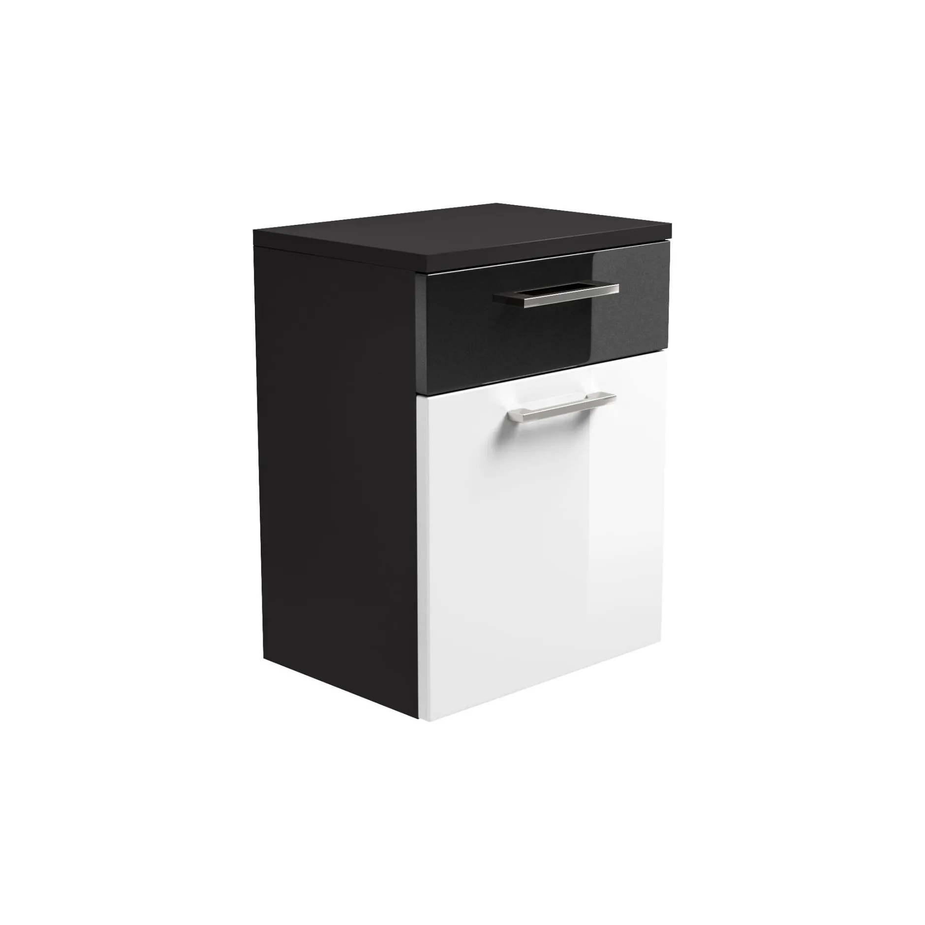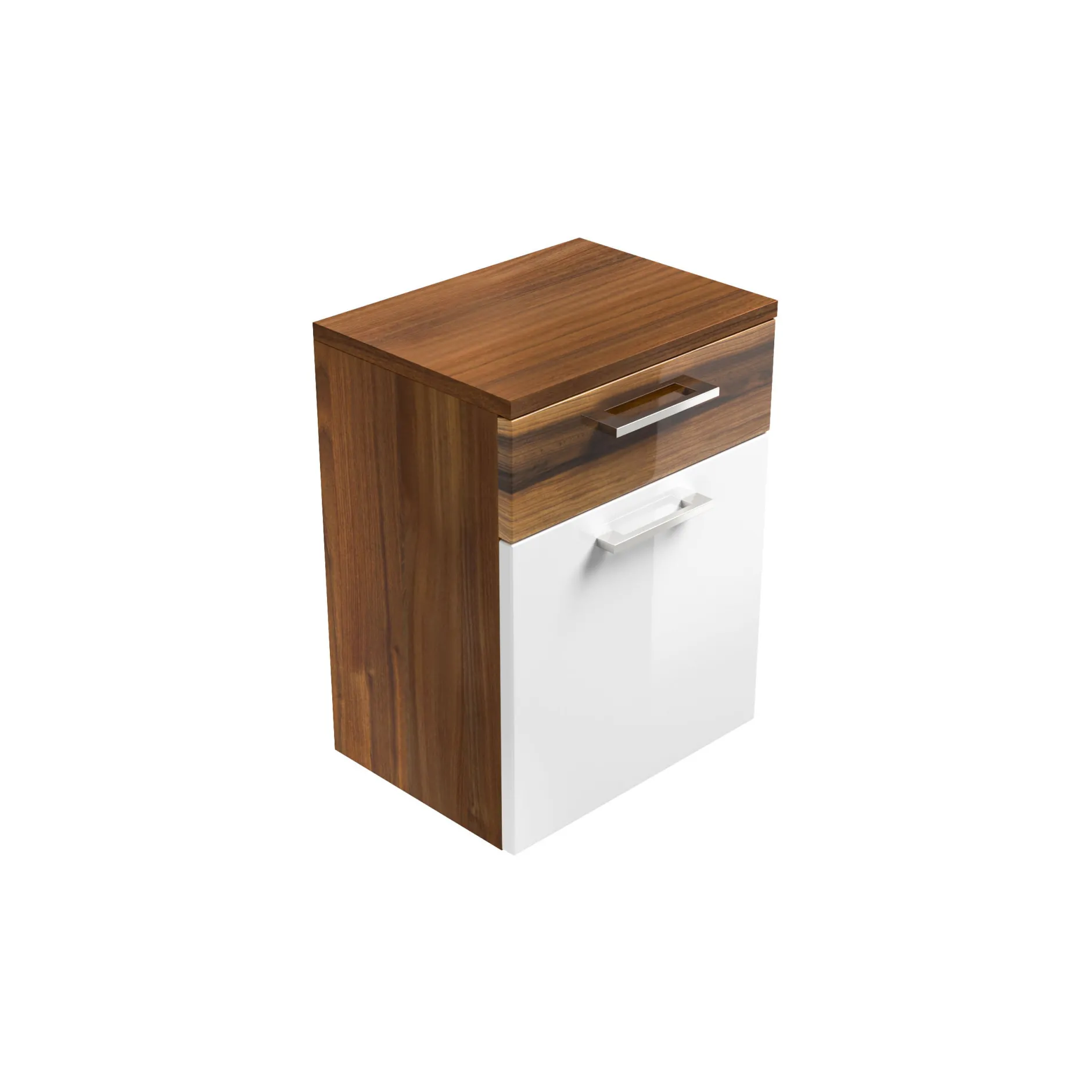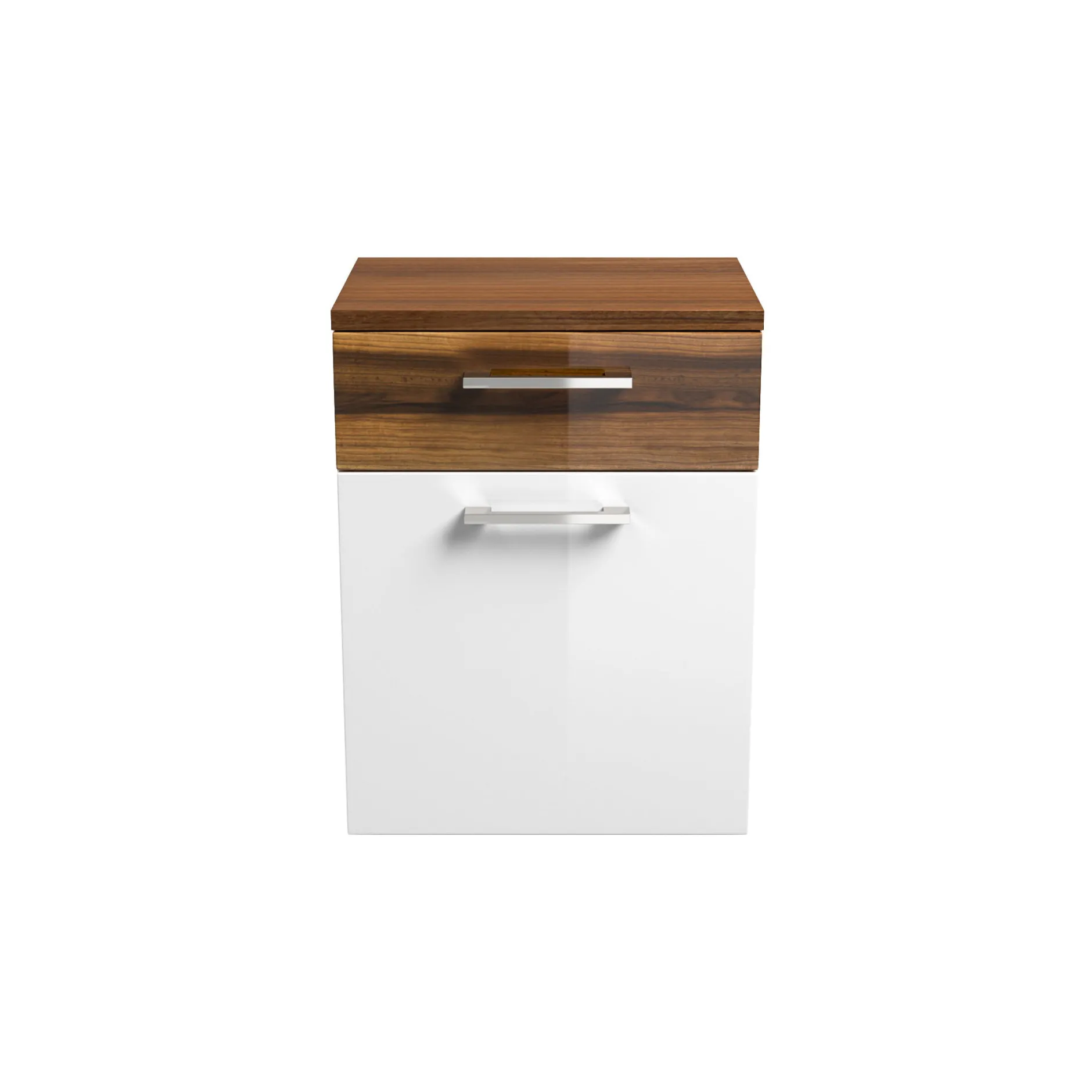 Deze stijlvolle badkamerkast heeft hoogglans spaanplaat-fronten gecombineerd met metalen hangrepen. Geruisloze sluiting van deuren, laden en kleppen dankzij het soft-close systeem. Gemakkelijk te plaatsen naast het bad meubel voor extra opbergruimte. Achter de klep voldoende opbergruimte voor schone handdoeken. Door zijn melamine afwerking is deze badkamerkast beter schoon te houden en langer beschermd tegen stof en vuil. Gemakkelijk te monteren door middel van bijgeleverde montagehandleiding. Bekijk ook de andere elementen uit deze serie!