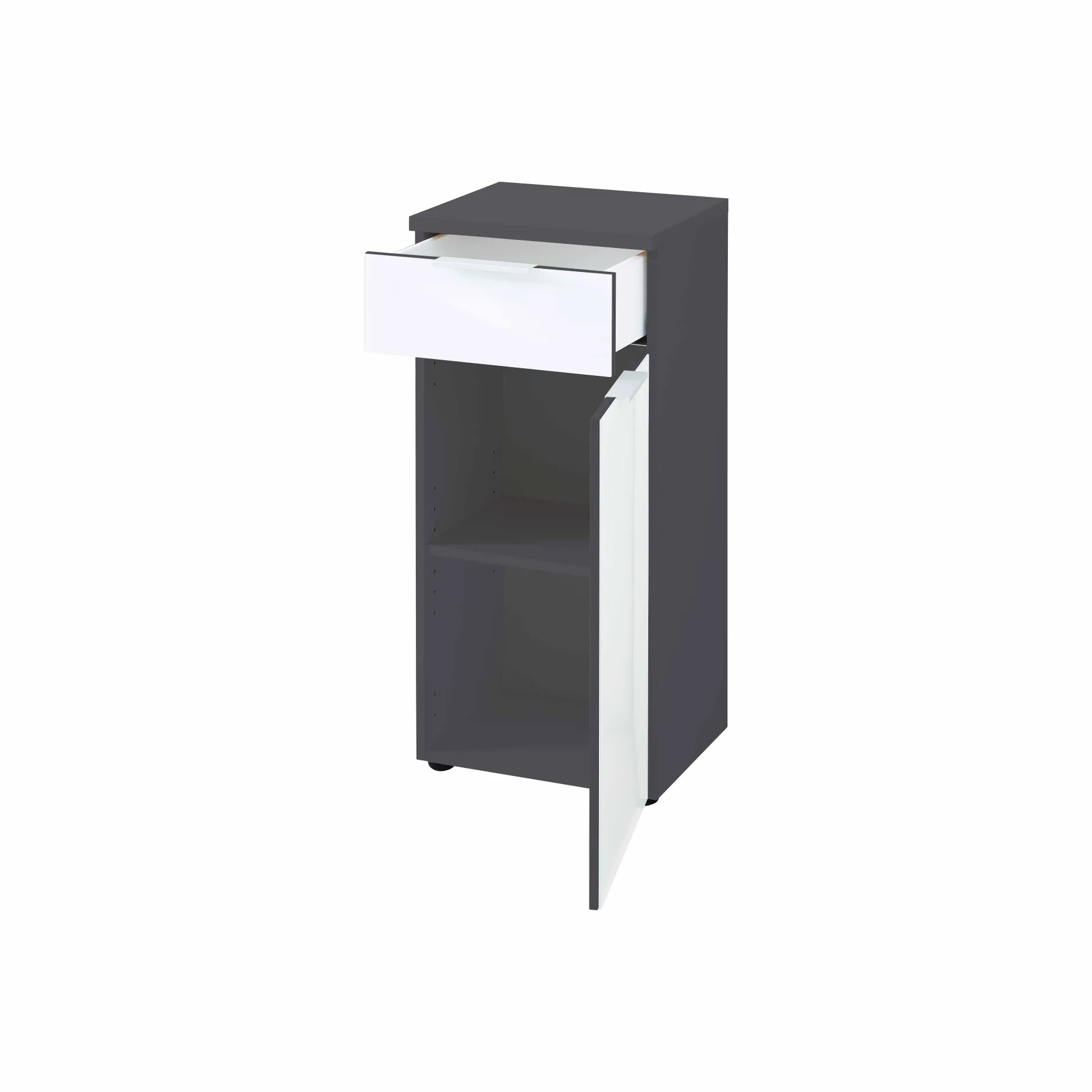 Deze handige badkamerkast voorziet je snel van extra opbergruimte en creëert een extra blad naast je wastafel(kast). Door de verstelbare legplank achter de deur kun je de kast naar wens indelen. Deze deur kan zowel links- als rechtsdraaiend gemonteerd worden en sluit, net als de lade, langzaam en zacht door het soft-close systeem. De meubelen zijn afgewerkt met een sterke melamine die tevens fijn schoon te houden is. Met de bijgeleverde montagehandleiding monteer je dit meubel in een handomdraai. Richt je badkamer in harmonie in met de bijpassende badkamerkasten uit deze serie!