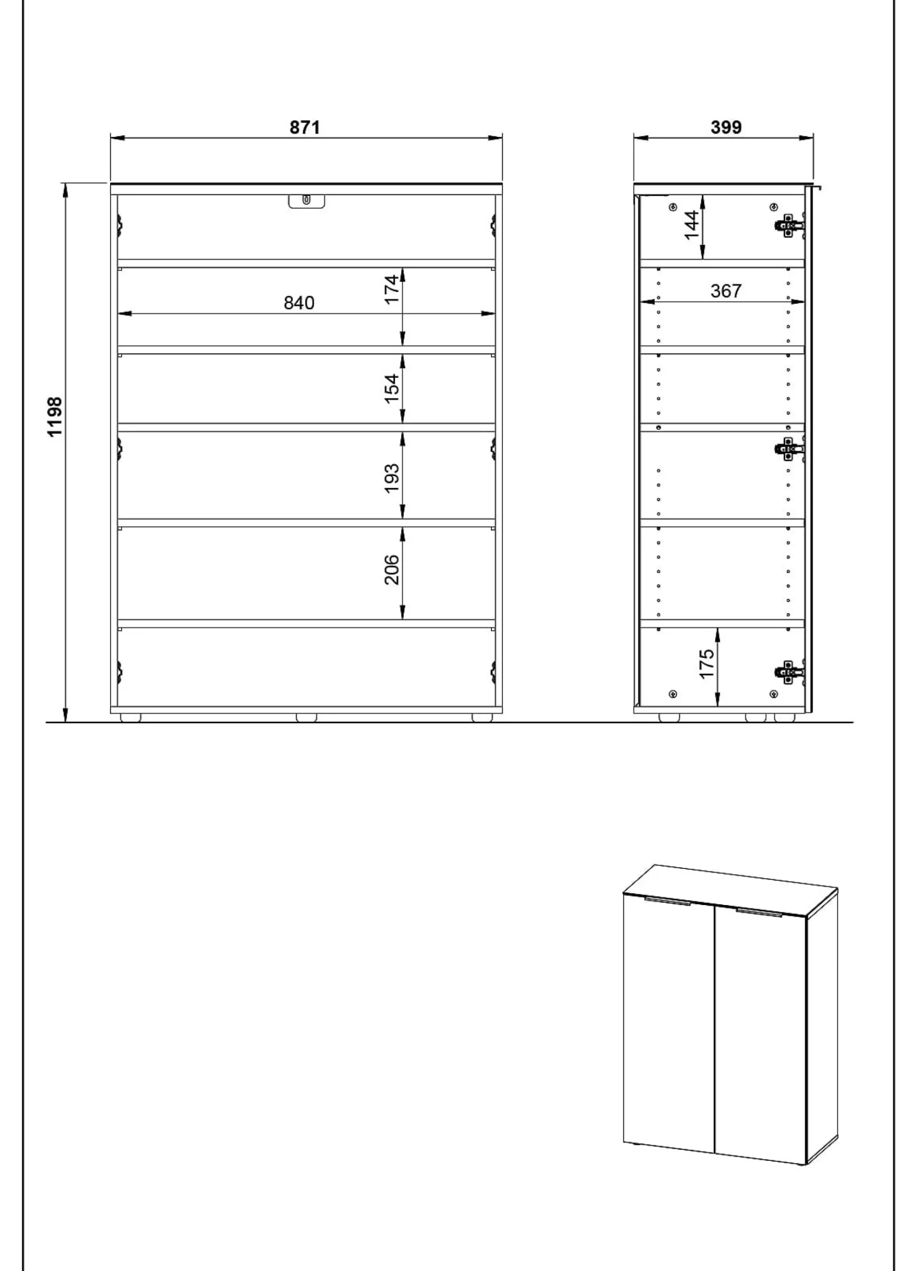 - Afmetingen: 87 x 120 x 40 cm (B x H x D)
