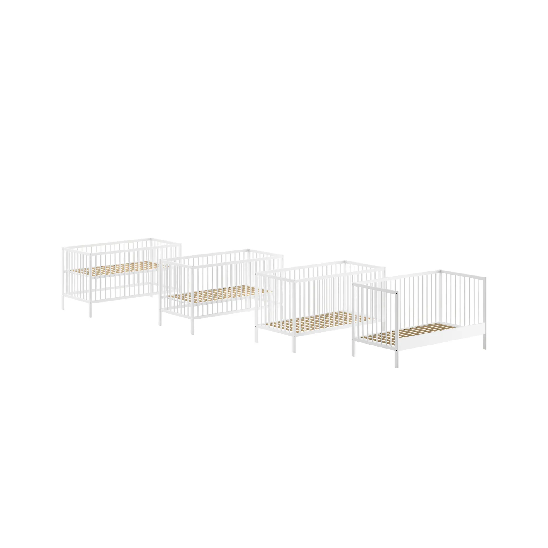 Dit peuterbed (70 x 140 cm) in een frisse witte kleur is een superflexibele slaapoplossing. De lattenbodem kun je in drie verschillende hoogtes instellen, en je kunt drie spijlen verwijderen voor extra gemak. Met het stevige frame en de mooie afwerking is dit bed een veilige plek voor je kleintje. En het beste? Je kunt het eenvoudig omtoveren tot een peuterbed, zodat het meegroeit met je kind. Gemaakt van duurzaam beukenhout, biedt dit bed niet alleen stevigheid, maar ook een leuke, frisse uitstraling.
