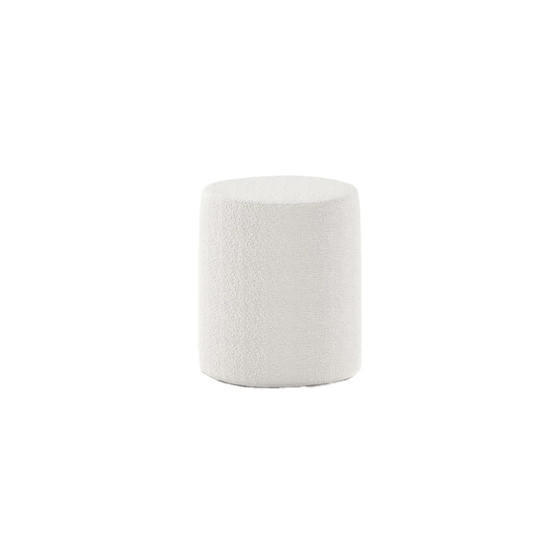 Deze poef past door zijn Bouclé afwerking gemakkelijk in elk interieur. Verkrijgbaar in verschillende kleuren.