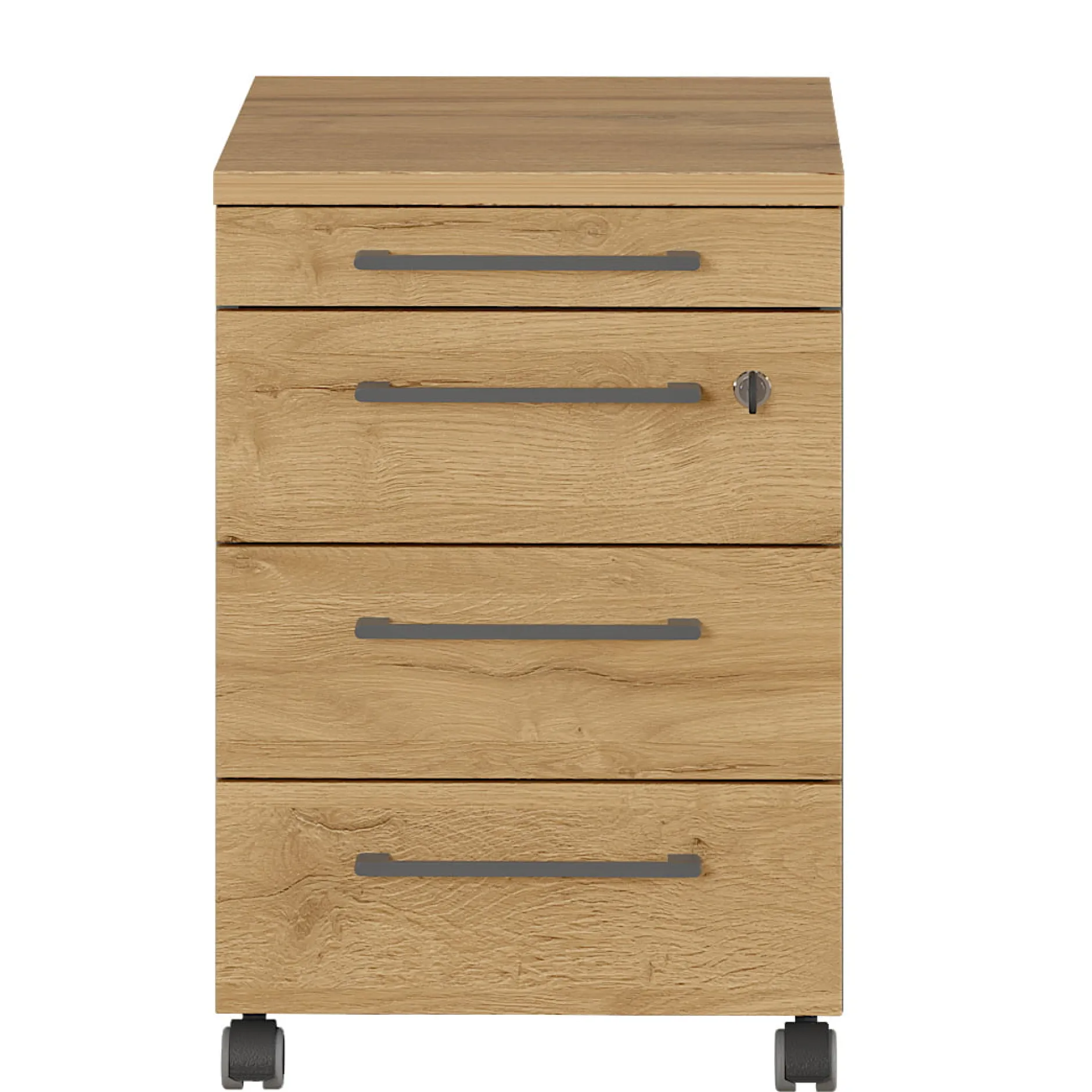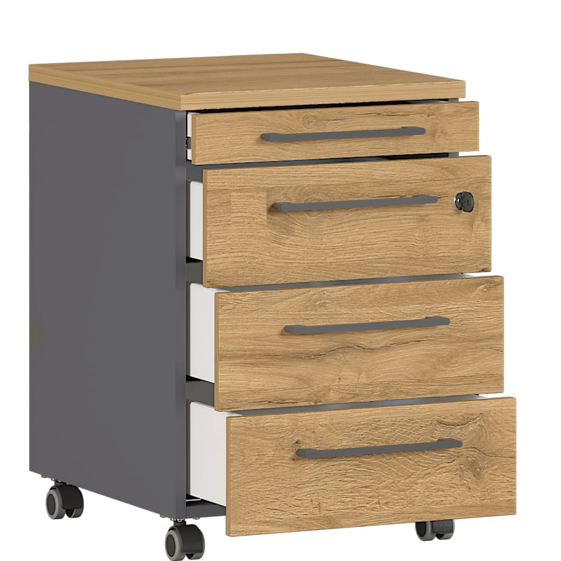 Deze handige rolcontainer kan onder elk bureau toegepast worden. Bovenin is een lade voor de kleine kantoorbenodigdheden met daaronder 3 afsluitbare laden. Uit veiligheidsoverweging kan er 1 lade per keer worden geopend. Dus geen 2 of 3 laden tegelijkertijd.