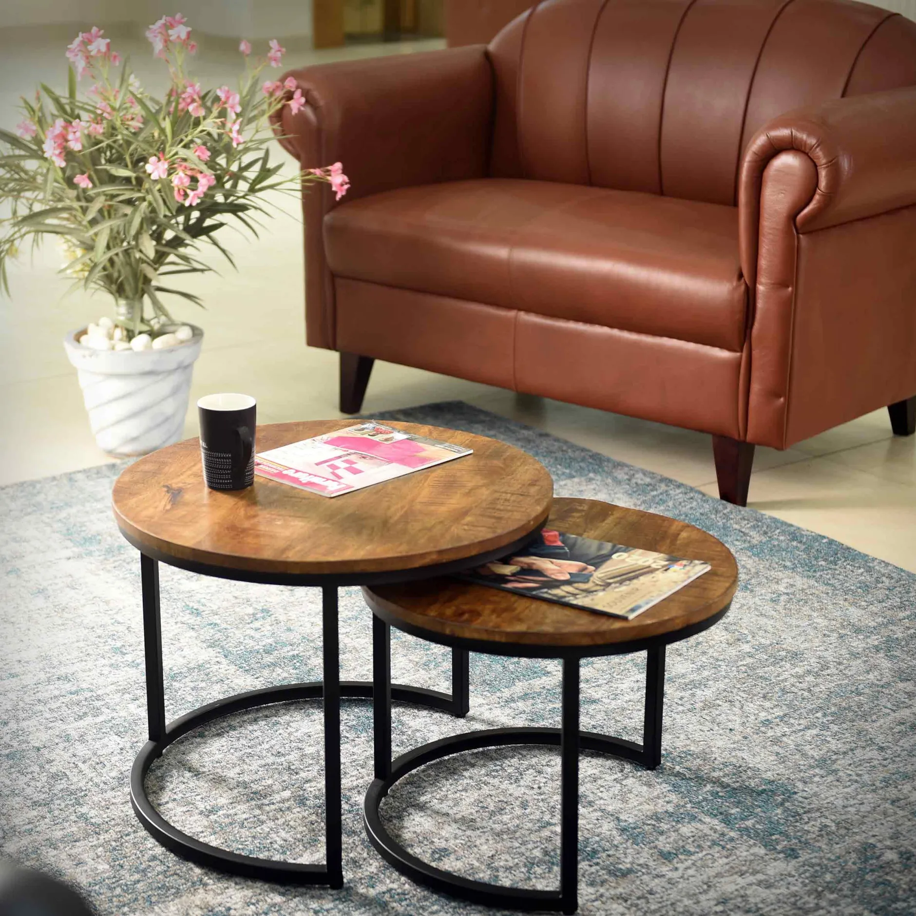 Deze luxe salontafel set heeft een houten blad in combinatie met een zwart metalen onderstel. Door zijn afmetingen kun je de set zowel onder elkaar als naast elkaar plaatsen. Voldoende ruimte voor al je spullen. Ook verkrijgbaar als set van 2. De tafels hebben de volgende afmetingen: