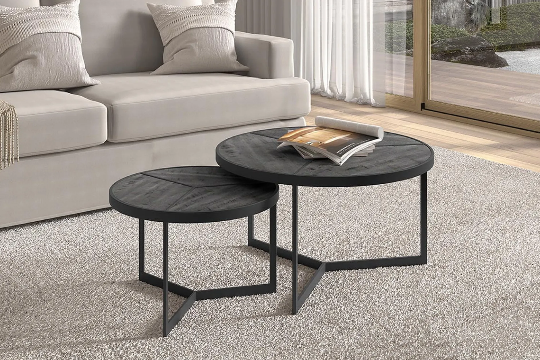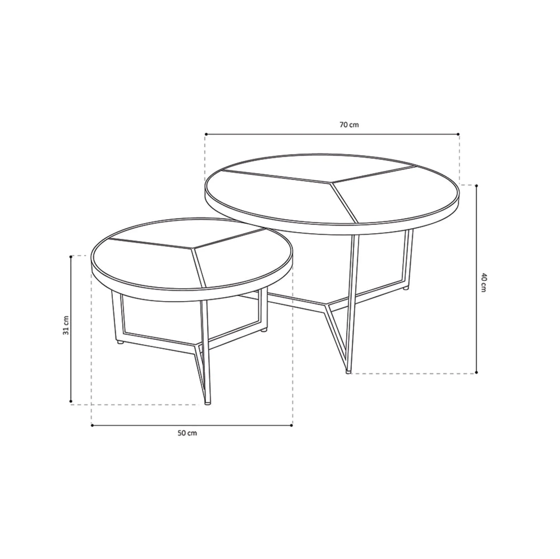 Met deze salontafel set ben je verzekerd van een goede aankoop! De bladen zijn gemaakt van gerecycled hout en het metalen onderstel zorgt ervoor dat deze tafel stabiel op de grond staat. De tafels hebben de volgende afmetingen: