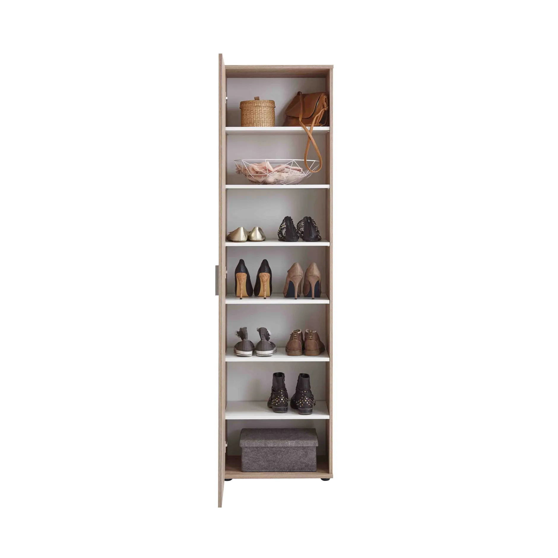 Met deze schoenenkast ben je verzekerd van voldoende ruimte voor al je schoenen en accessoires, deel de kast geheel naar eigen inzicht in. Achter de deur bevinden zich 6 verstelbare legplanken. Gemakkelijk te monteren door middel van de bijgeleverde montagehandleiding.