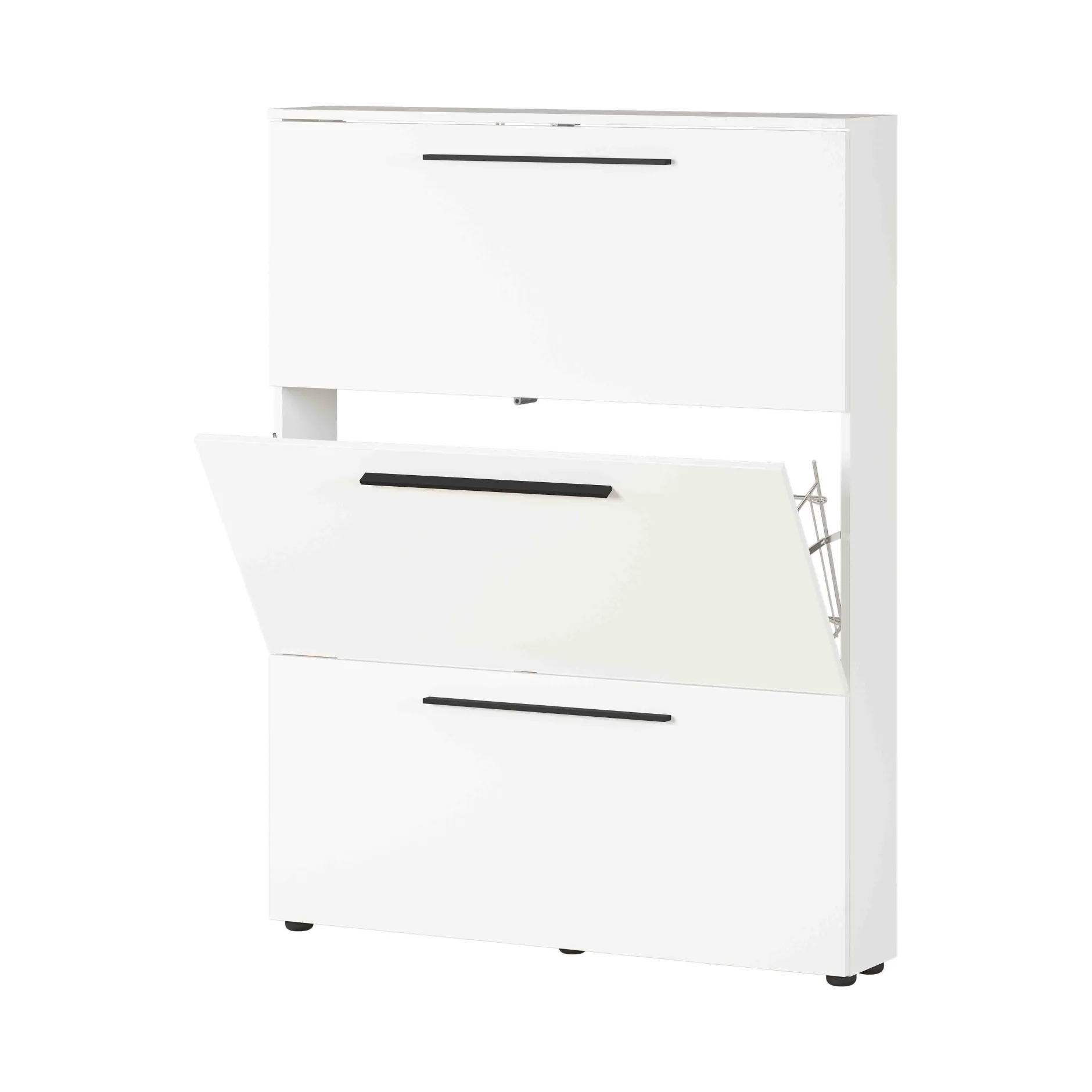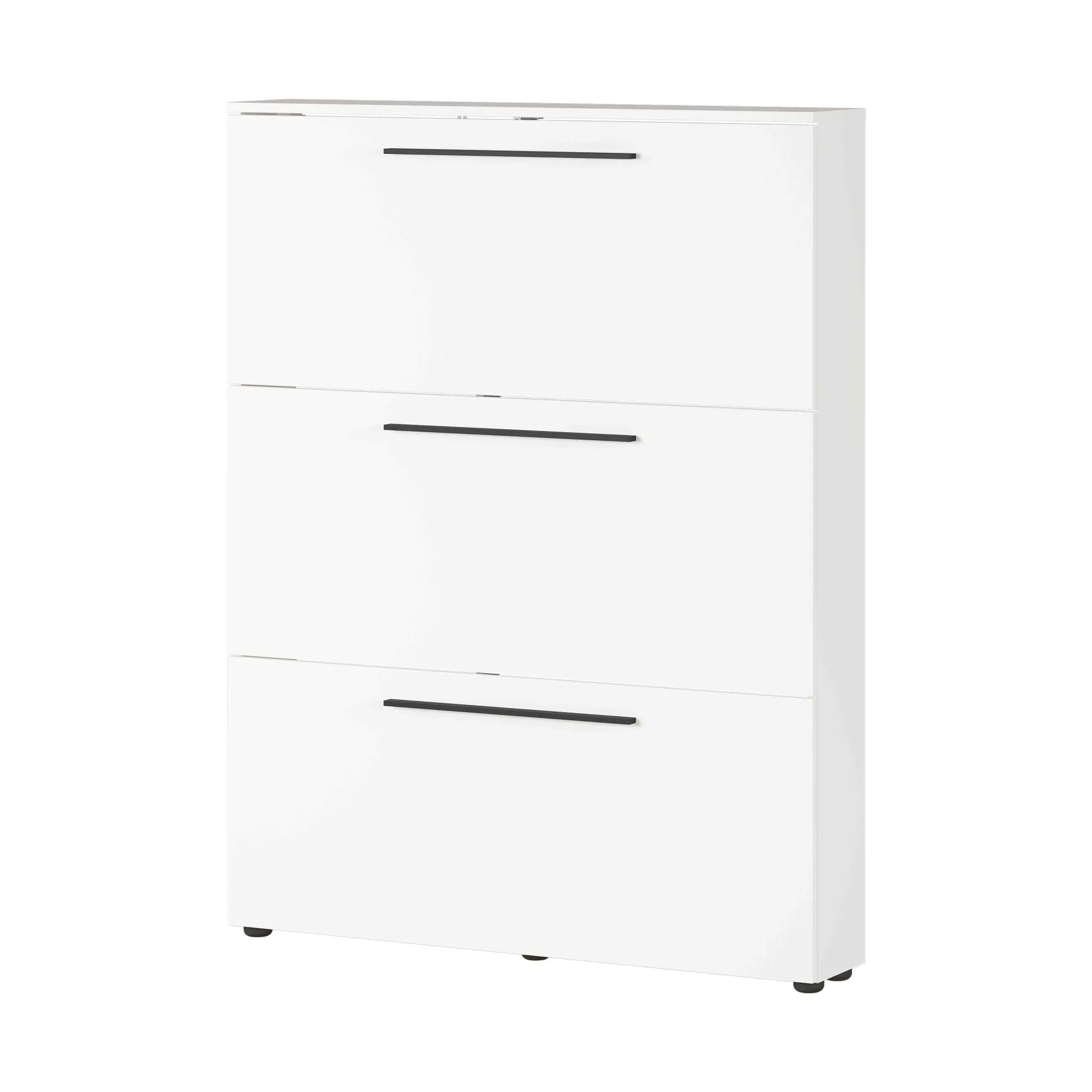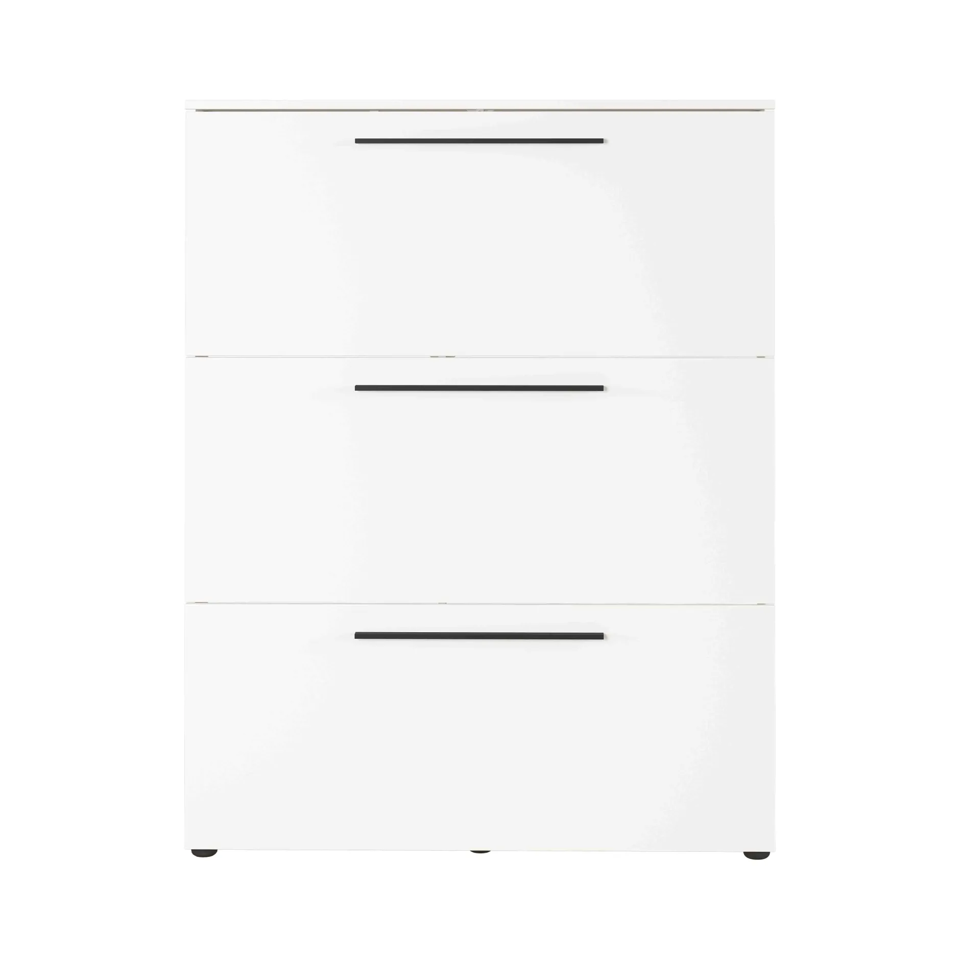 Met deze prachtige efficiënte schoenenkast is je hal snel opgeruimd! De schoenenkast heeft 3 vakken waarachter je ongeveer 12 paar schoenen kunt opbergen. De handvatten van gepoedercoat zwart metaal geven een mooi contrast aan het meubel. De meubelen uit deze prachtige serie geven elke hal een moderne stijlvolle look. De meubelen zijn gemaakt van hoogwaardige Duitse kwaliteit. Door een sterke melamine afwerking in combinatie met een ABS-kantafwerking ben je met deze meubels verzekerd van een lange levensduur. De meubels zijn eenvoudig te monteren met behulp van een duidelijke montagehandleiding. Leuk te combineren met de andere meubels uit deze serie!