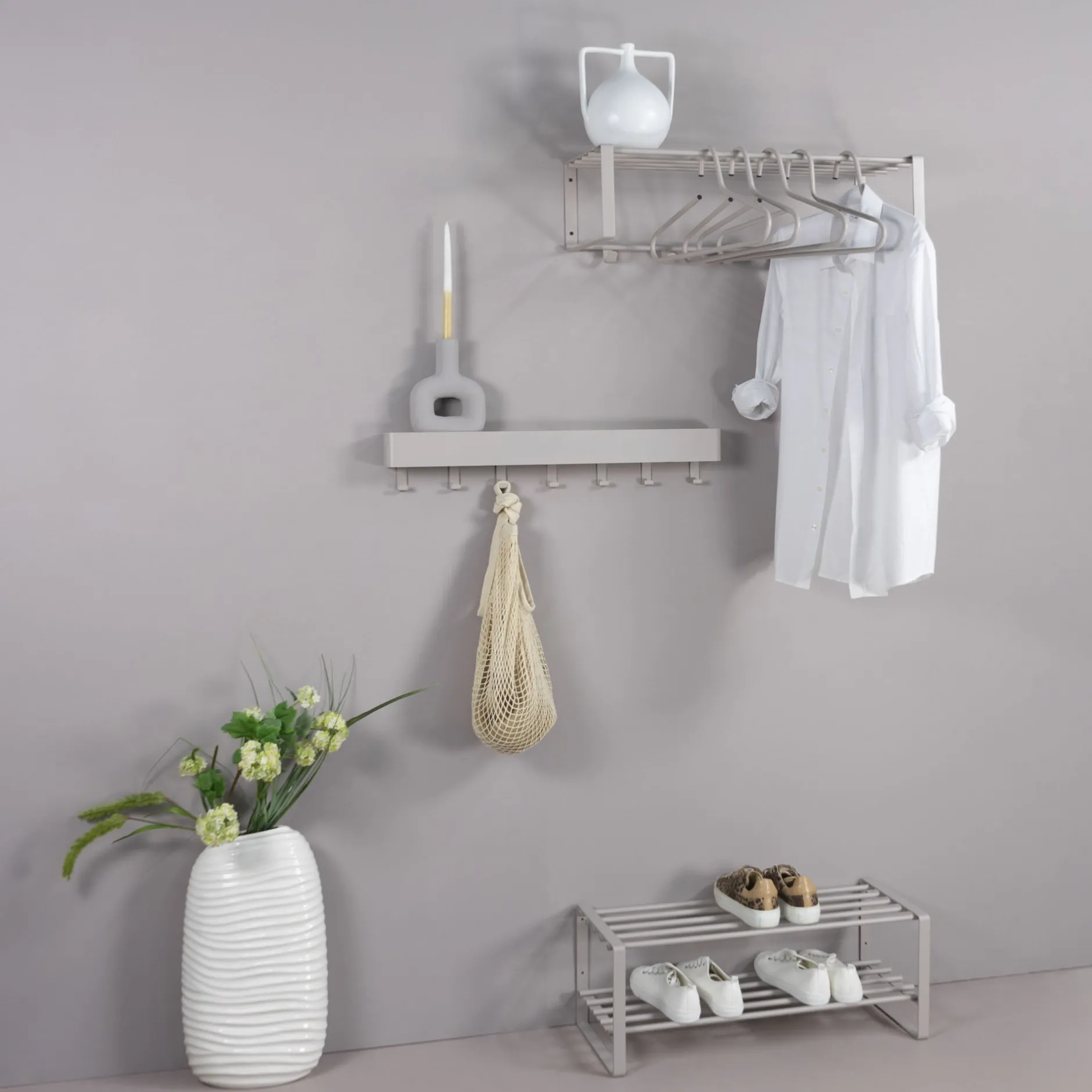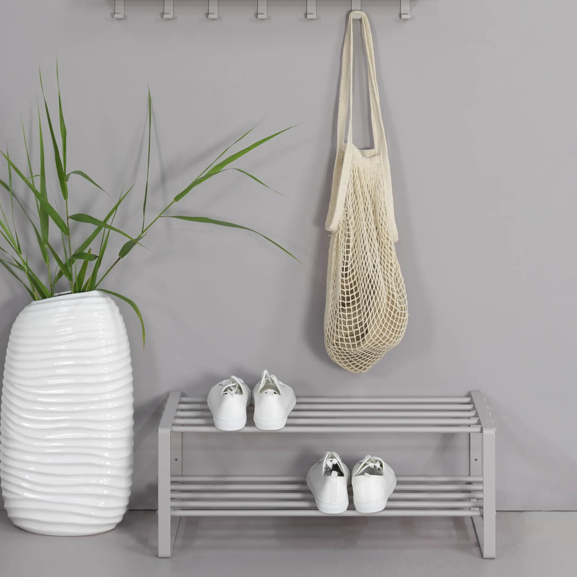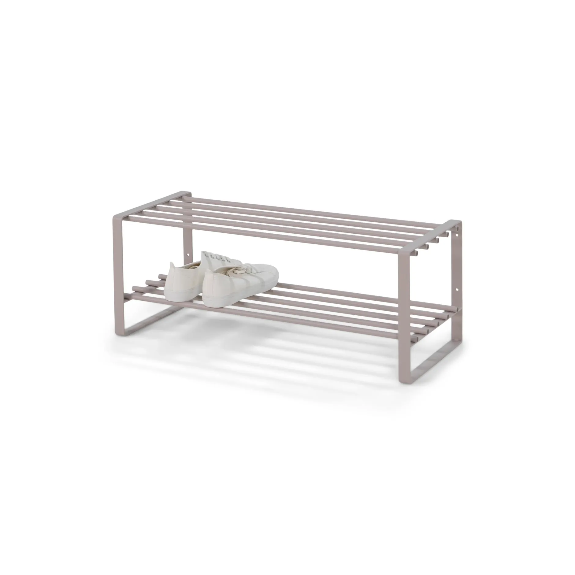 Dit schoenenrek met open zijden heeft boven en onder 5 stevige stangen, waarop gemakkelijk meerdere paren schoenen hun plaats vinden. Het schoenenrek is vervaardigd uit hoogwaardig geborsteld roestvast staal waardoor je verzekerd bent van een lange levensduur. Leuk te combineren met de andere producten uit deze collectie!