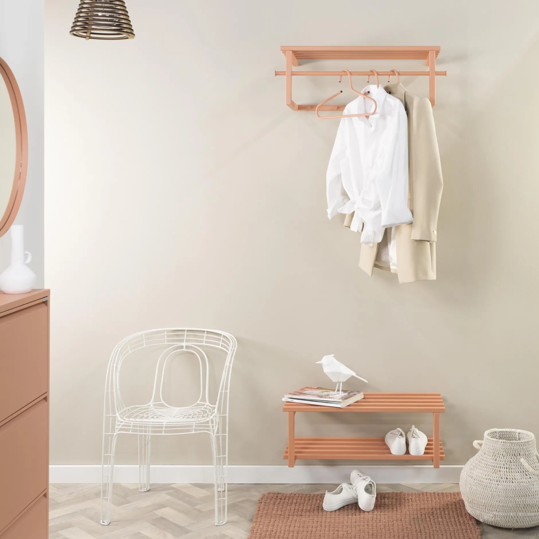 Met dit degelijke schoenenrek ben je verzekerd van een opgeruimde hal. Het schoenenrek is vervaardigd van een stevig staal en afgewerkt met een sterke poeder coating. Je bergt gemakkelijk 6 paar schoenen op in dit rek en het is leuk te combineren met de andere elementen uit deze collectie!