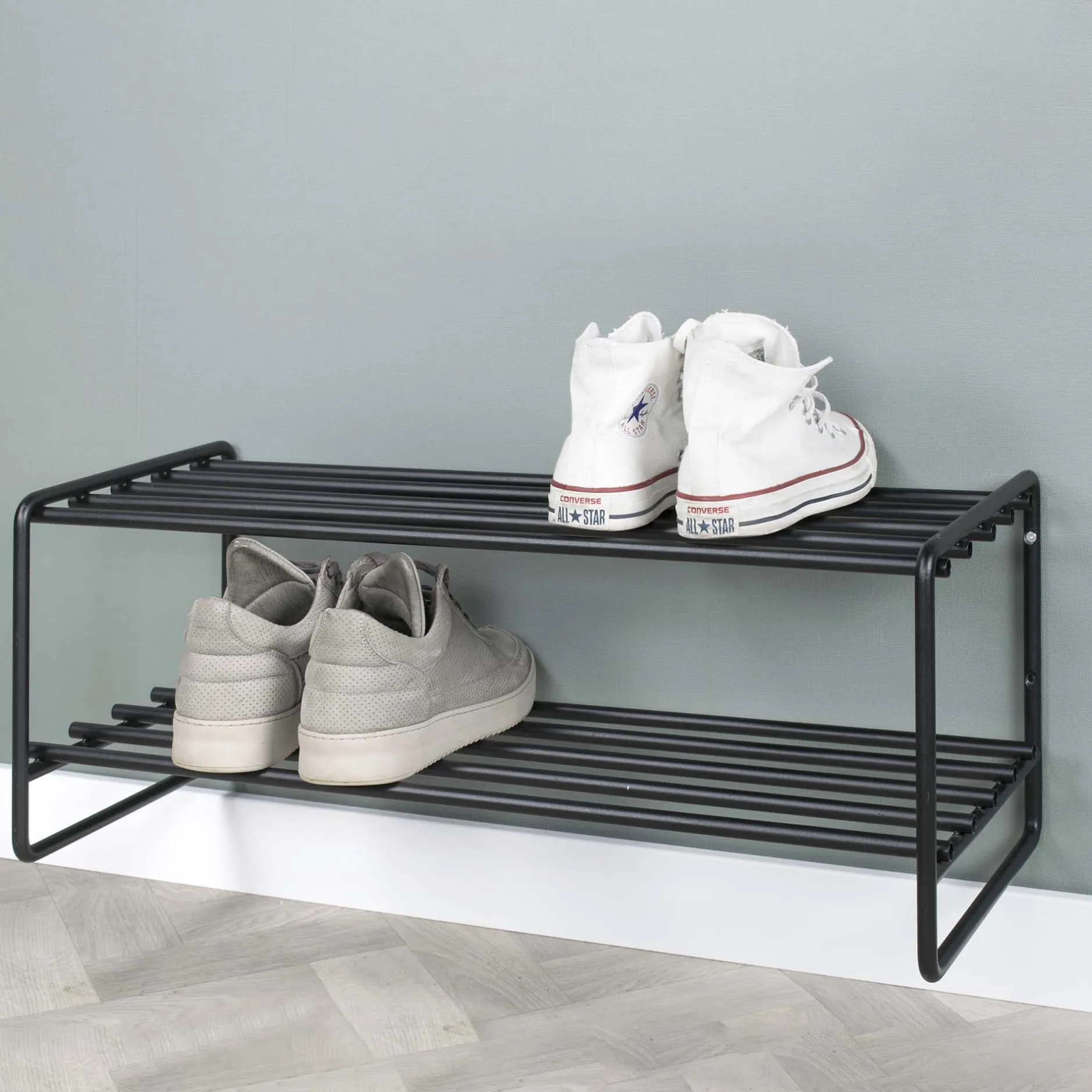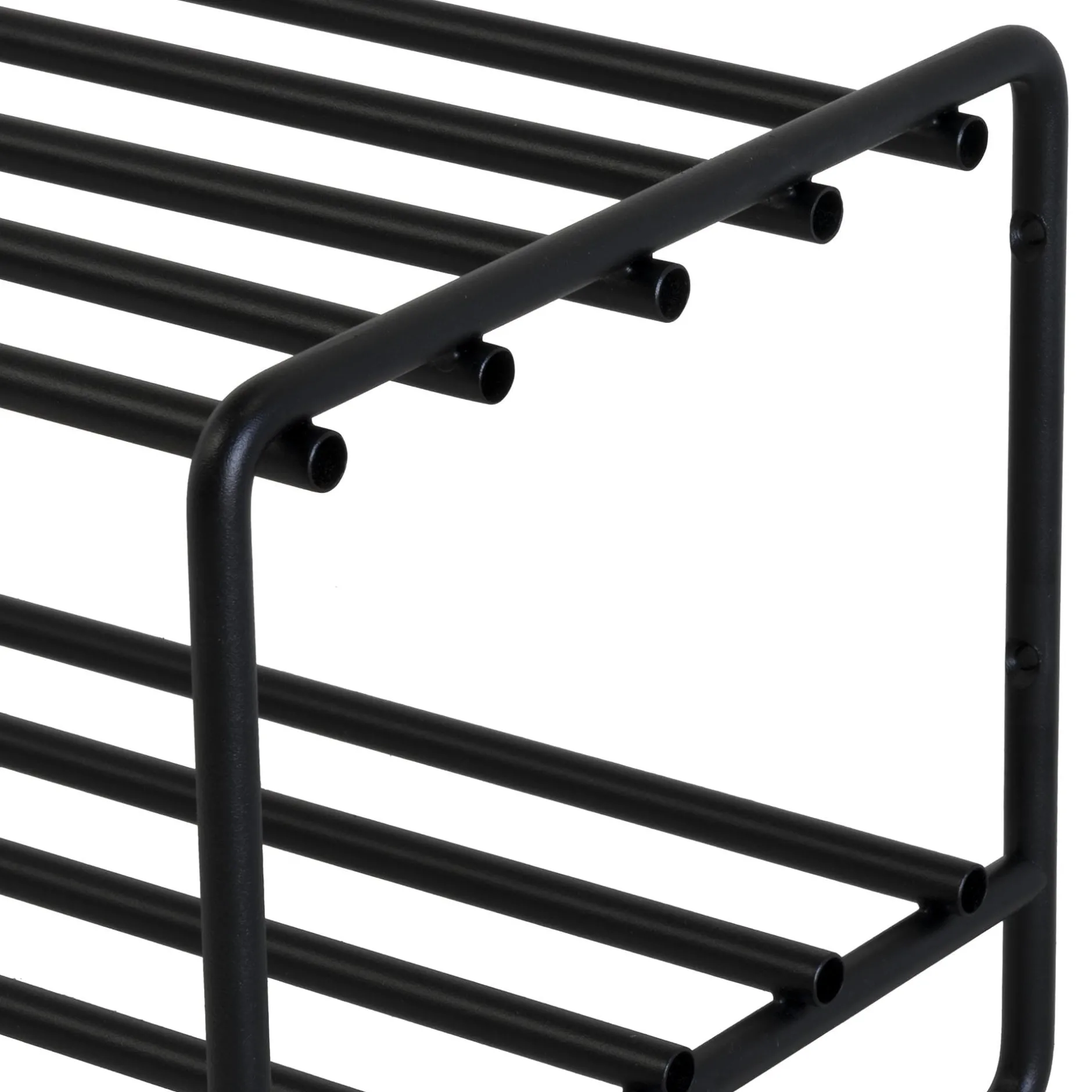 Met dit stijlvolle schoenenrek is je gang in een mum van tijd weer opgeruimd! Ruimte voor meerdere paar schoenen, gemaakt van metaal en afgewerkt met een sterke zwarte lak.