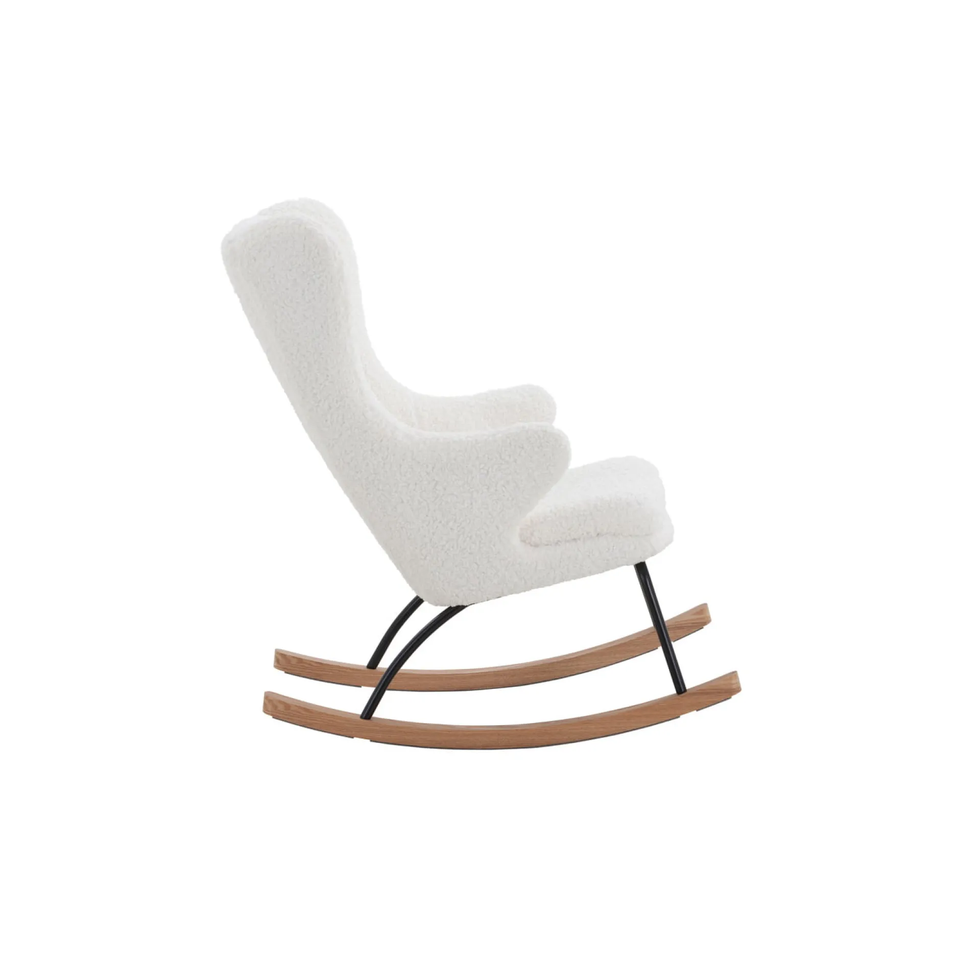 In deze schommelstoel kun je heerlijk relaxten. De stoel is heeft een goed zitcomfort en is bekleed met een zachte teddybont. De zithoogte van deze stoel is 50 centimeter en de zitbreedte is 50 centimeter. Verkrijgbaar in meerdere kleuren.