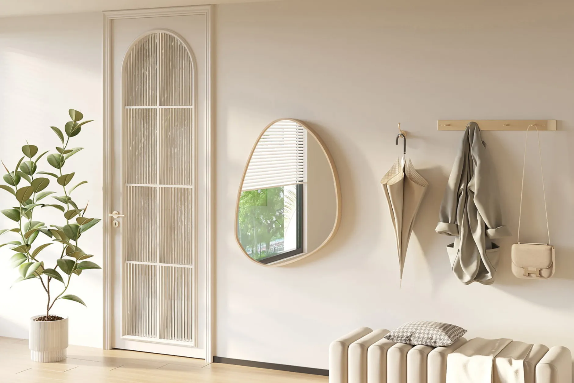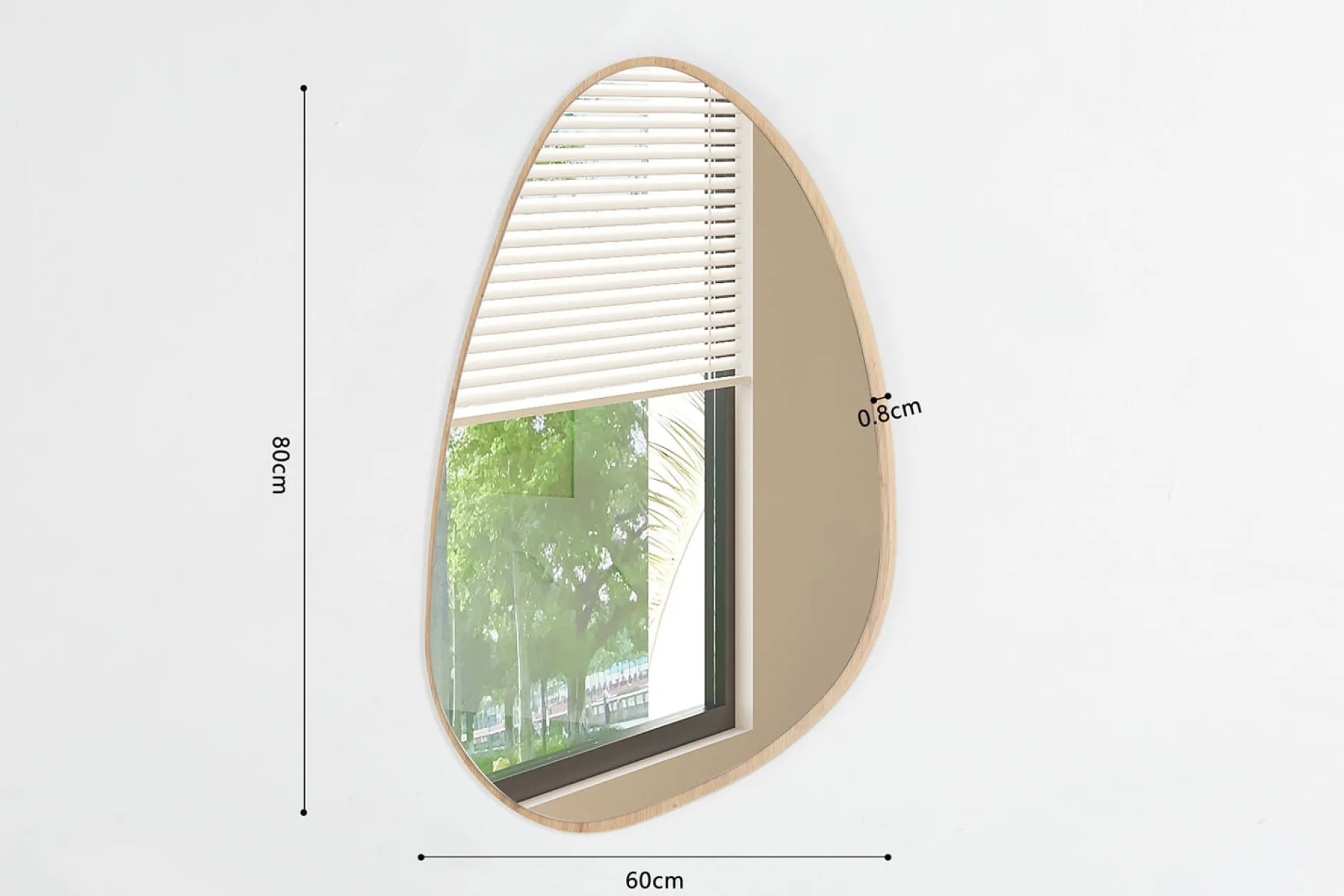 Gemaakt van hoogwaardig MDF met een fraaie eiken afwerking, is deze spiegel zowel duurzaam als stijlvol. Met een diepte van slechts 0,8 cm is hij ideaal voor smalle muren zonder veel ruimte in beslag te nemen.