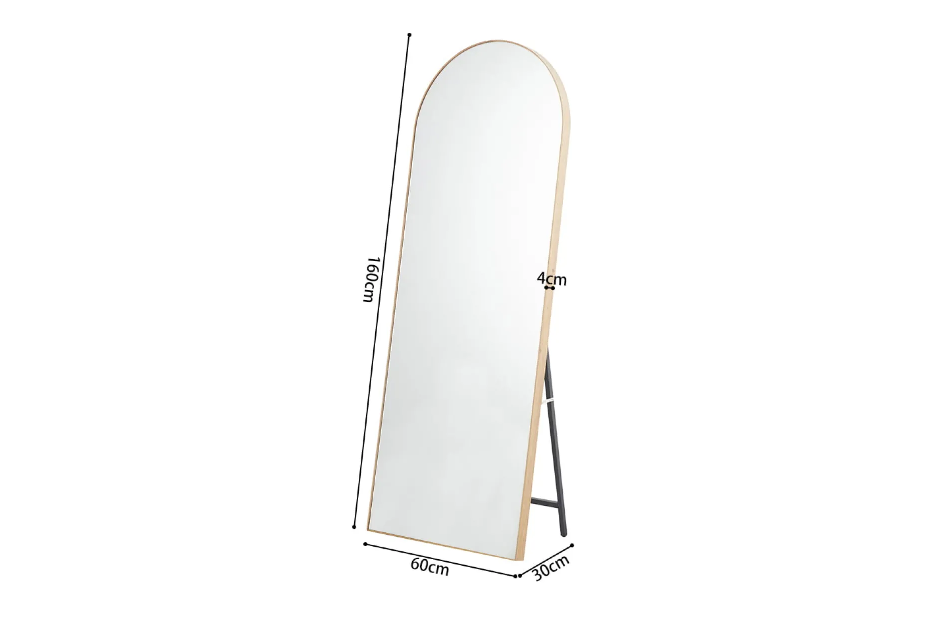 De Spiegel Nine Eiken is een prachtige staande spiegel die een vleugje elegantie toevoegt aan elke ruimte. Met een breedte van 60 cm en een hoogte van 160 cm biedt deze spiegel een royaal reflectieoppervlak, ideaal voor het bekijken van je outfit van alle kanten.