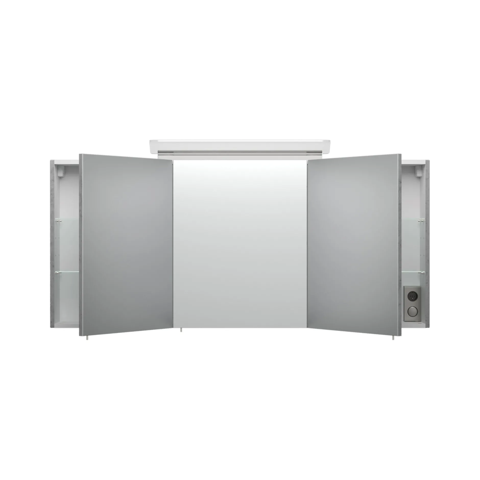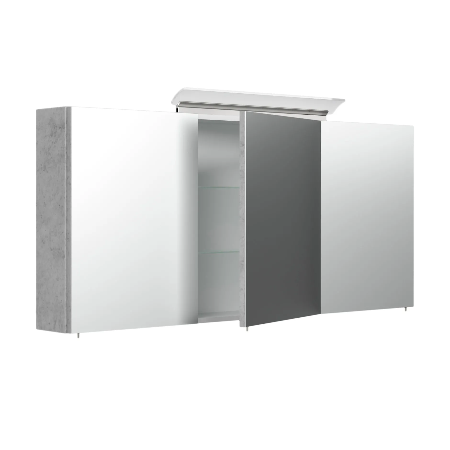 Deze spiegelkast kan door zijn strakke design een plaatsje vinden in elke badkamer. Door zijn 10 watt neutraal witte lamp ben je verzekerd van goed licht! (4000 Kelvin). Achter de deuren, voorzien van soft-close, bevinden zich 6 glazen planken om al je spullen op te bergen, ook bevindt zich hier de aan/uit knop in combinatie met een stopcontact. Deze kast is afgewerkt met een beton melamine en is 140cm breed, 62,2cm hoog en 17cm diep.