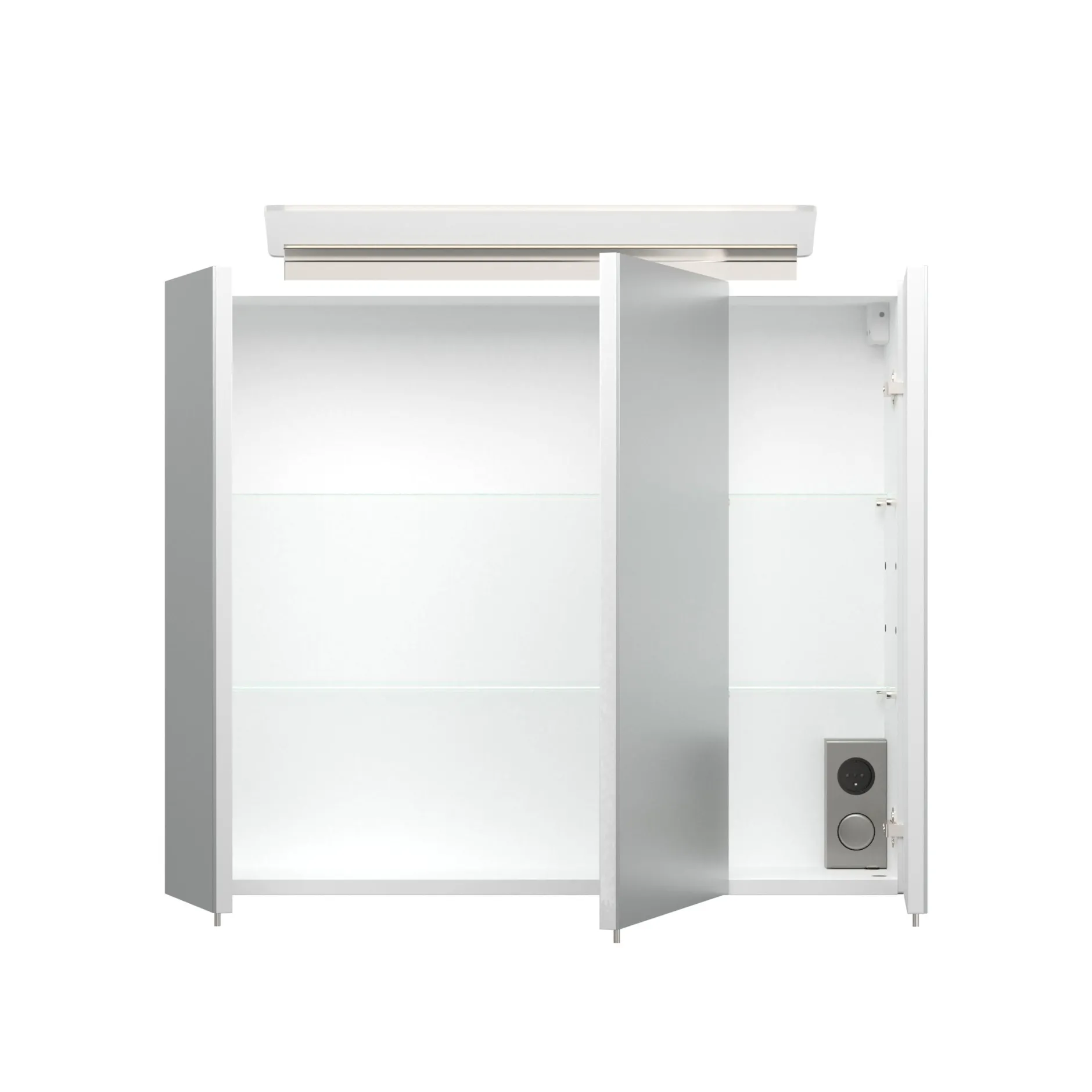 Deze spiegelkast kan door zijn strakke design een plaatsje vinden in elke badkamer. Door zijn 10 watt neutraal witte lamp ben je verzekerd van goed licht! (4000 Kelvin). Achter de deuren, voorzien van soft-close, bevinden zich 4 glazen planken om al je spullen op te bergen, ook bevindt zich hier de aan/uit knop in combinatie met een stopcontact. Deze kast is afgewerkt in hoogglans wit en is 70cm breed, 62cm hoog en 17cm diep.