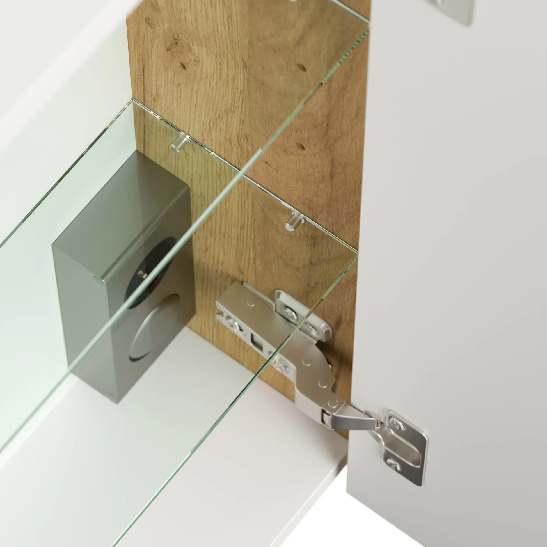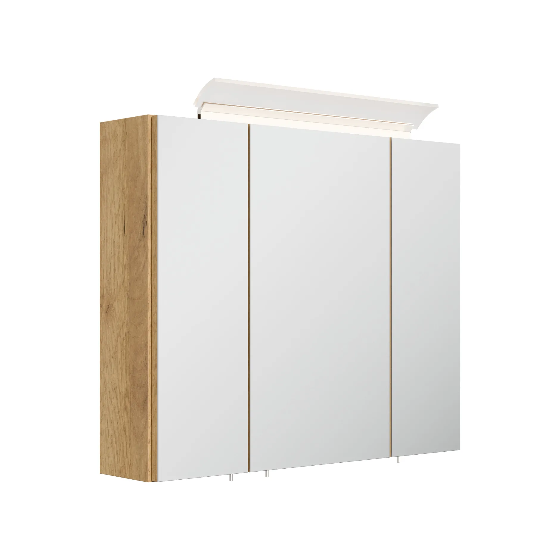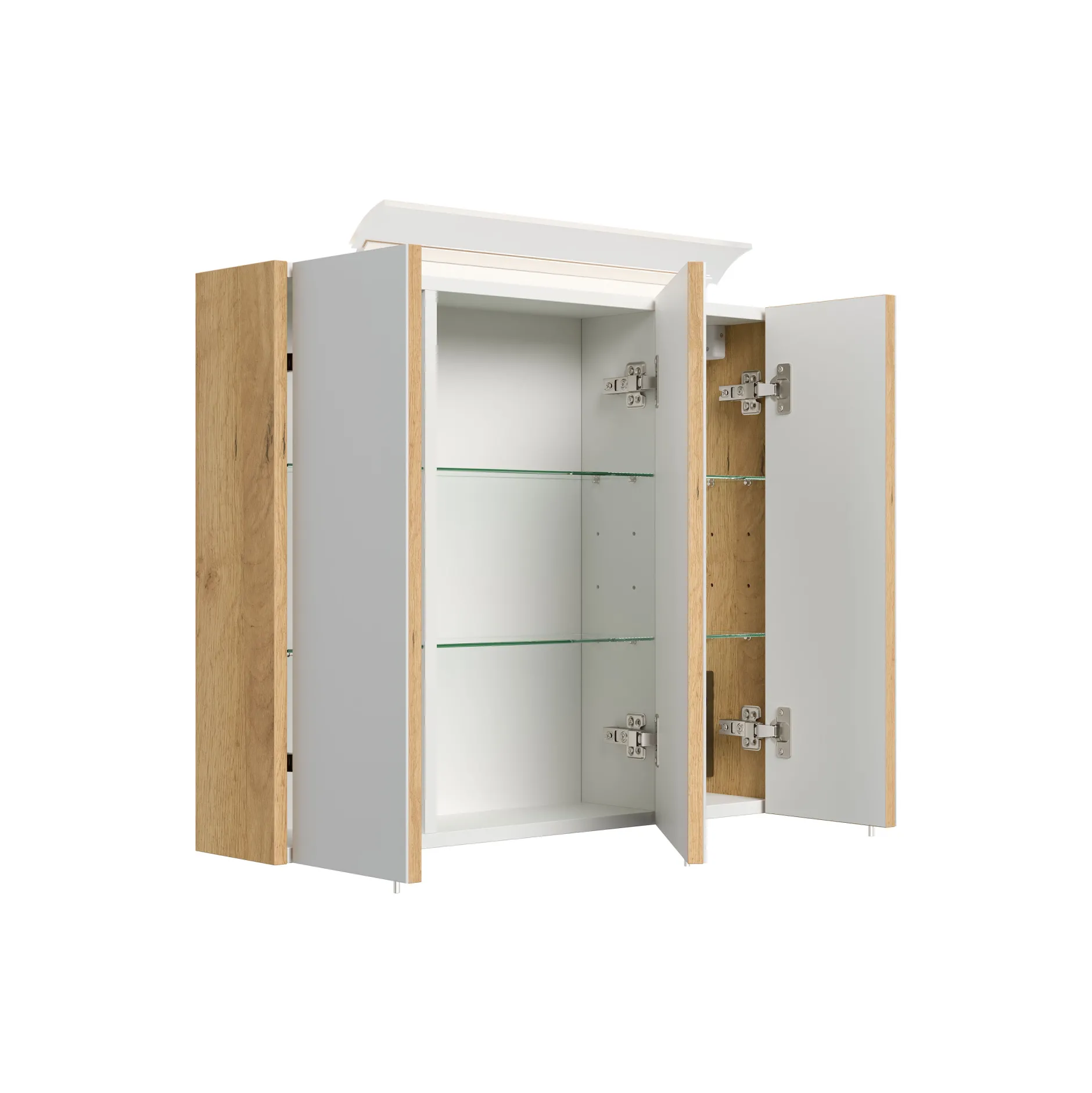 De Spiegelkast Calais Eiken 75 cm brengt een warme, natuurlijke sfeer in je badkamer. Dit in Duitsland ontworpen meubel is vervaardigd uit een degelijke spaanplaat en afgewerkt in een realistische eiken Gold-look, wat zorgt voor een authentieke houtuitstraling. De kast beschikt over 2 spiegeldeuren en 6 flexibel inzetbare planken, ideaal voor al je badkameraccessoires. De afmetingen zijn 75 cm breed, 62 cm hoog en 17 cm diep, en het gewicht bedraagt 20 kg.