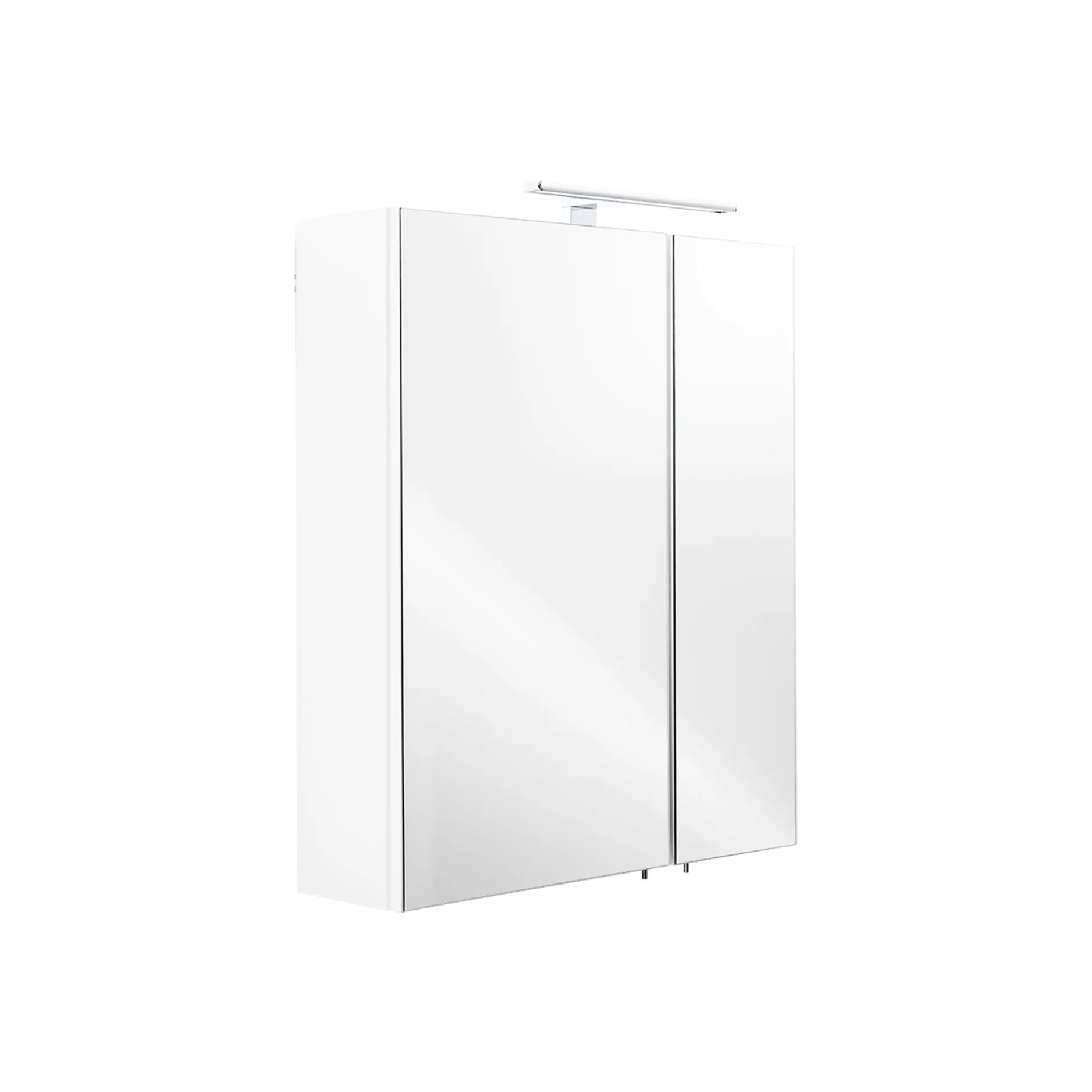 De Spiegelkast Miami Wit 60 cm is een echte klassieker, vervaardigd uit een stevige spaanplaat. Dankzij de compacte breedte van 60 cm past deze spiegelkast moeiteloos in vrijwel elke badkamer. De kast beschikt over 2 spiegeldeuren en 2 flexibel inzetbare planken voor optimale opbergruimte. Een ingebouwde chroomkleurige LED-lamp, bediend via een schakelaar, zorgt voor helder, neutraal wit licht en creëert een aangename sfeer. De afmetingen (B x H x D) zijn 60 x 68 x 16 cm.