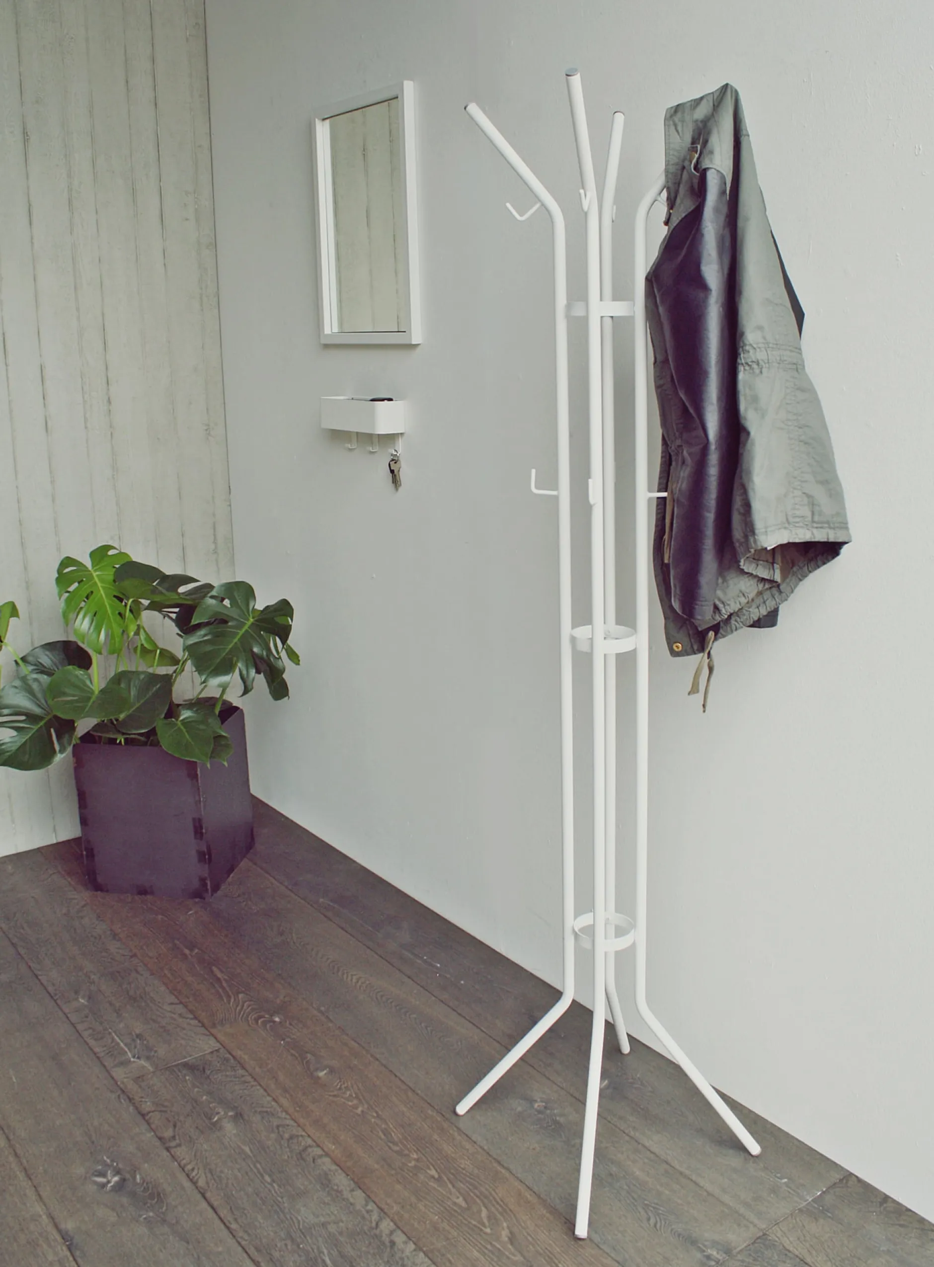 Deze 4-poots staande kapstok staat als een huis, door de vervaardiging uit een prima kwaliteit staal en vakkundige afwerking in een witte fijnstructuur poedercoating. De kapstok is ook leverbaar in een nikkelkleurige of zwarte fijnstructuur poedercoating.