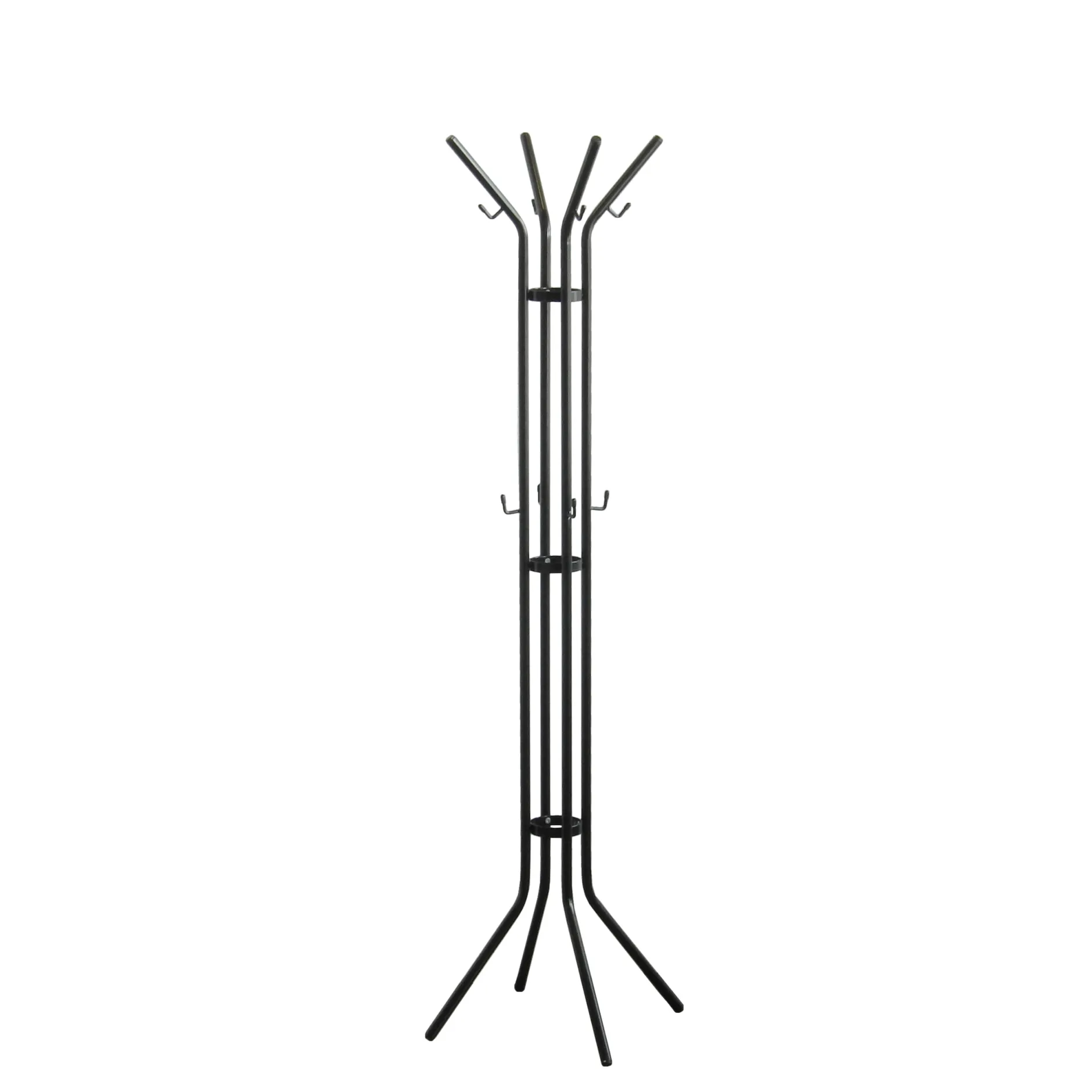 Deze 4-poots staande kapstok staat als een huis, door de vervaardiging uit een prima kwaliteit staal en vakkundige afwerking in een zwarte fijnstructuur poedercoating. De kapstok is ook leverbaar in een nikkelkleurige of witte fijnstructuur poedercoating.