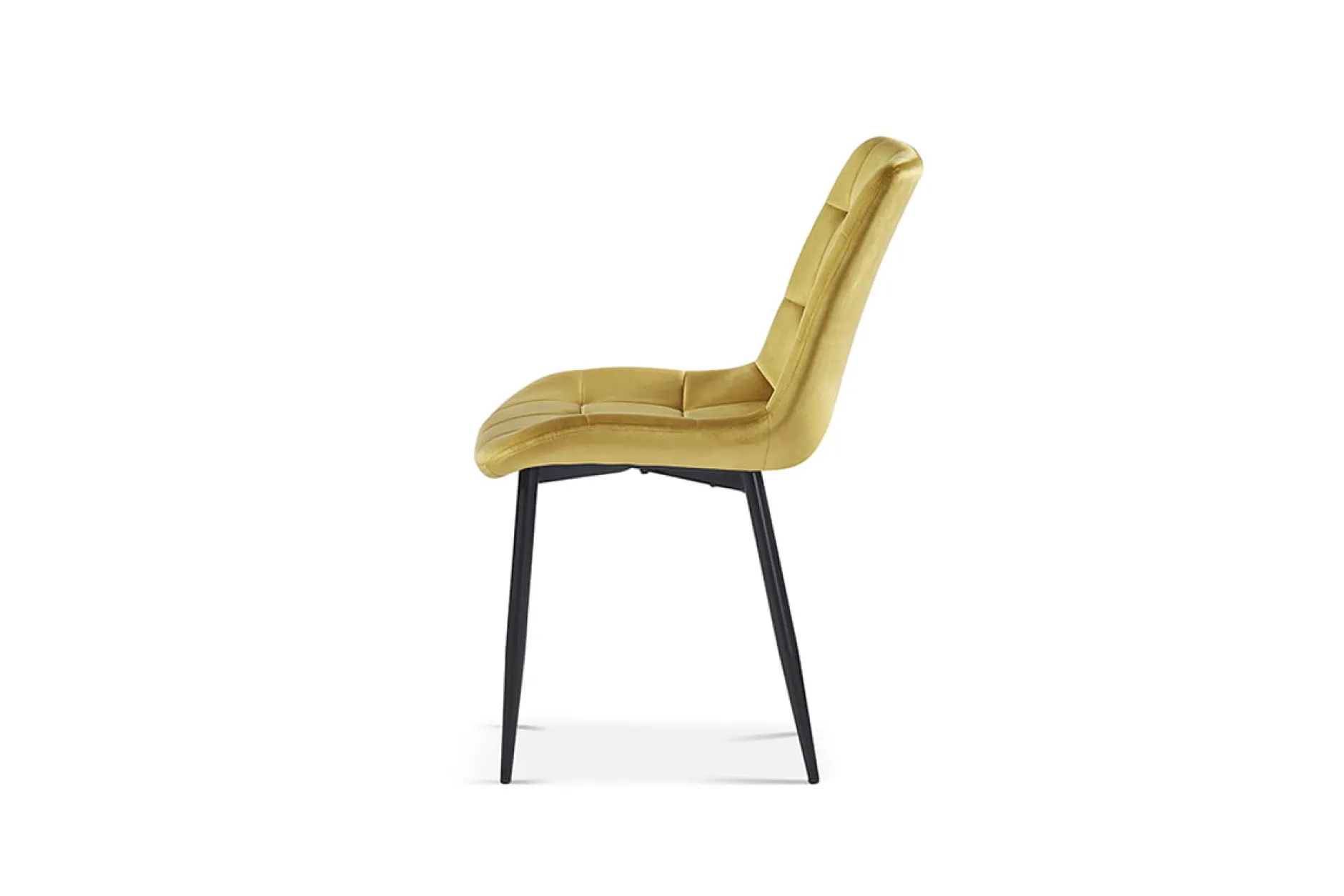 Deze moderne comfortabele stoel is bekleed met een zachte velours stof. Het blokpatroon in combinatie met zijn zwarte metalen poten geeft deze eetkamerstoel een leuke extra dimensie. De stoel heeft een zithoogte van 47 cm en een zitdiepte van 44 cm. Verkrijgbaar in meerdere kleuren.
