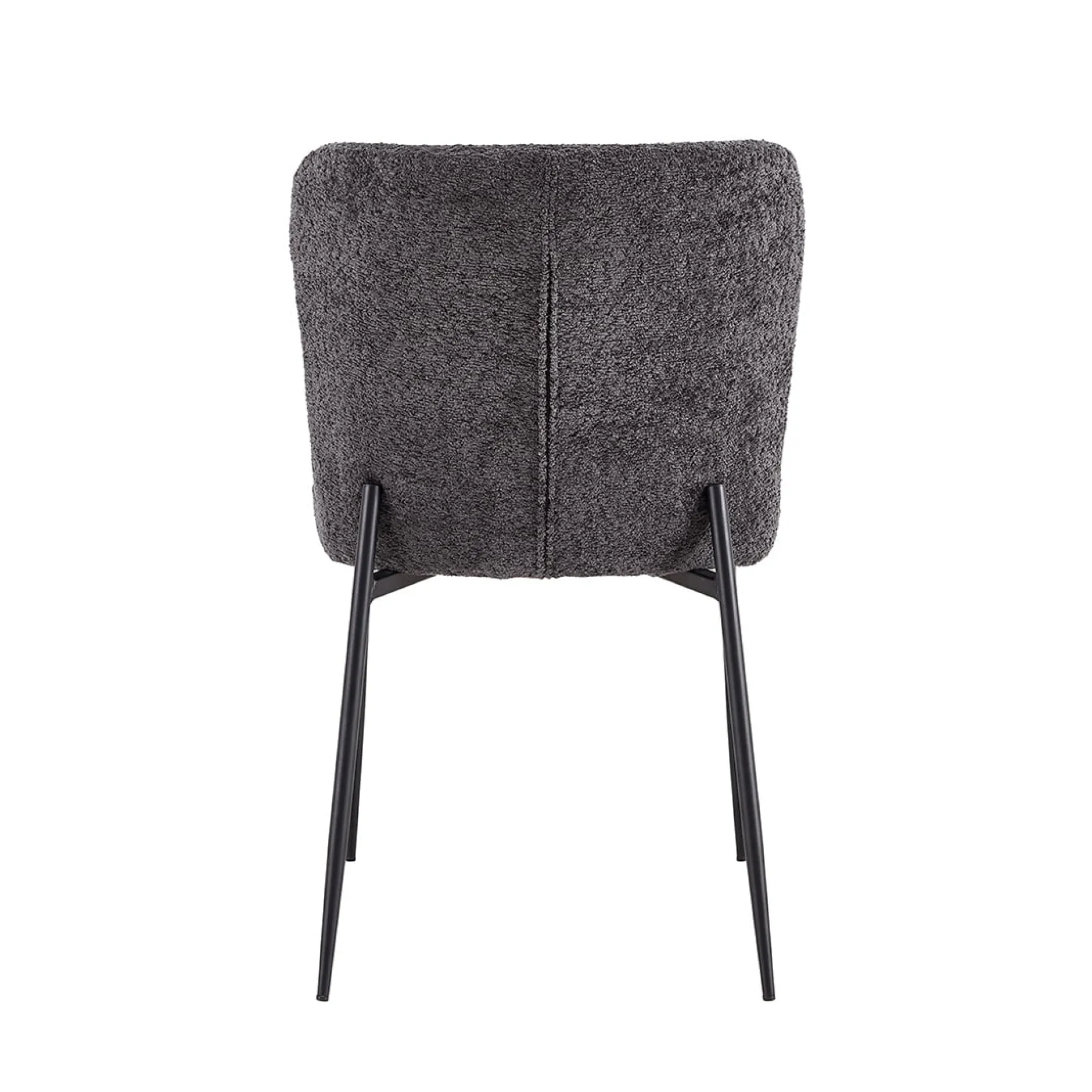 Deze trendy eetkamerstoel heeft metalen ronde zwarte poten en staat stevig op de grond. De stoel heeft een goed zitcomfort en is voorzien van een mooie Bouclé stoffering. Bouclé is een stof dat bestaat uit geweven patronen, draden en lussen van verschillende stoffen, hierdoor ontstaat een grovere structuur welke zacht aanvoelt. Verkrijgbaar in verschillende moderne kleuren waardoor deze gemakkelijk in je interieur plaats neemt. De stoel heeft een zithoogte van 49,5 centimeter en een zitdiepte van 45 centimeter.