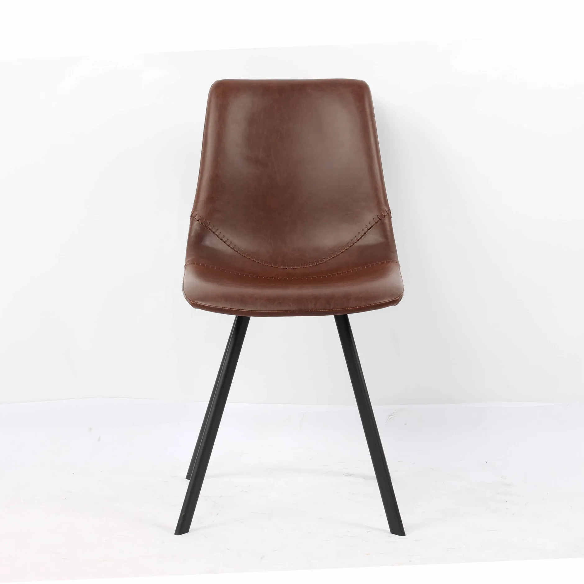 Door zijn voorgevormde kuip biedt deze stoel een goed zitcomfort, in combinatie met zijn strakke metalen poten en kunstleren bekleding geeft deze stoel een robuuste uitstraling. Hij heeft een zithoogte van 44 cm, een zitdiepte van 42 cm en is verkrijgbaar in het bruin, zwart, grijs en cognac. Deze stoel is door zijn rustige kleuren ook goed te combineren.