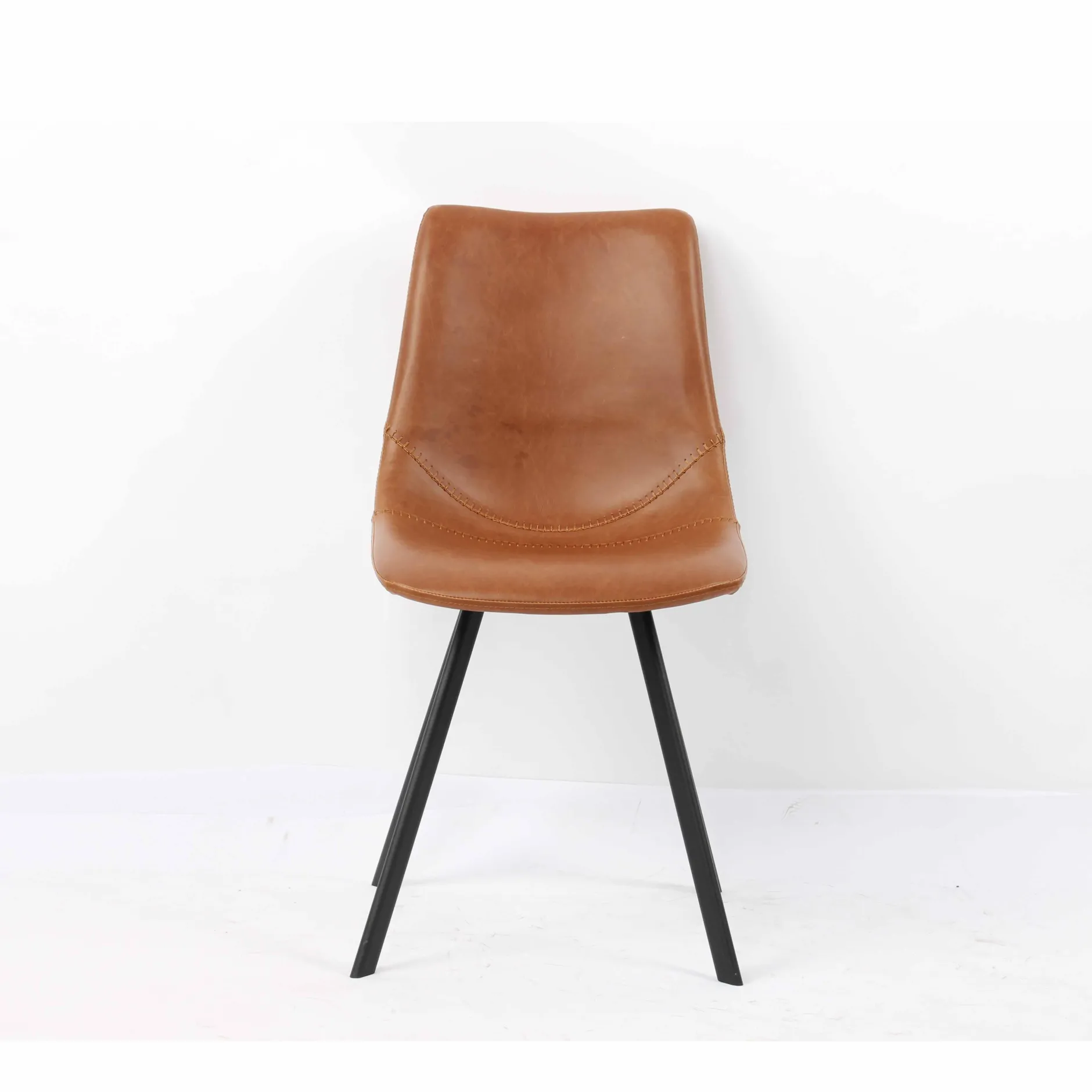 Door zijn voorgevormde kuip biedt deze stoel een goed zitcomfort, in combinatie met zijn strakke metalen poten en kunstleren bekleding geeft deze stoel een robuuste uitstraling. Hij heeft een zithoogte van 44 cm, een zitdiepte van 42 cm en is verkrijgbaar in het bruin, zwart, grijs en cognac. Deze stoel is door zijn rustige kleuren ook goed te combineren.